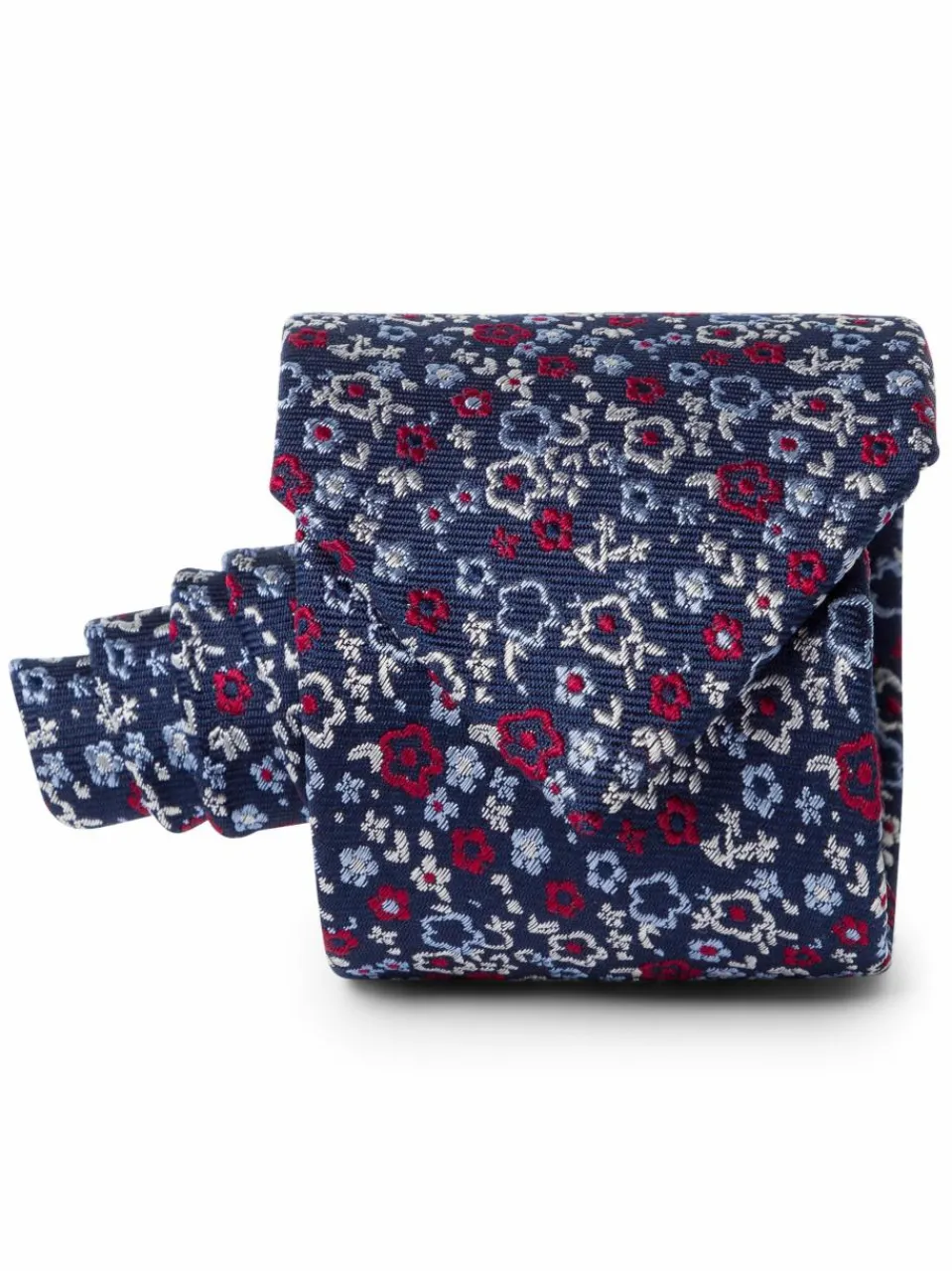Die Seidenkrawatte von Andrew James zeichnet sich durch ein florales Allovermuster aus und verleiht jedem Anzug eine besondere Note.