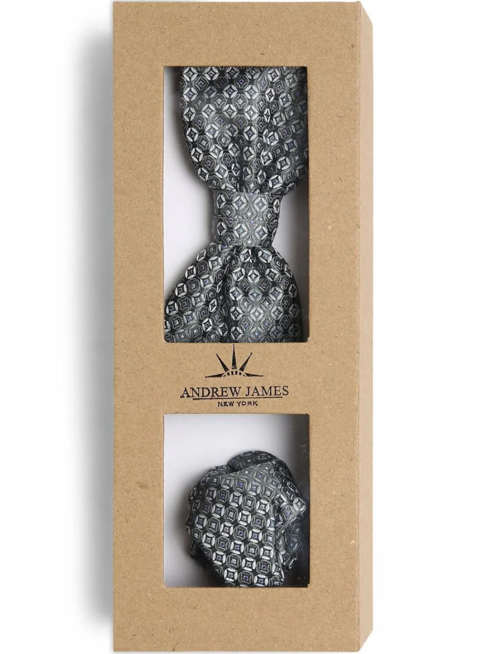 Die stilvolle Ergänzung, die elegante Anzug-Looks brauchen: das Andrew James New York Set aus Fliege und Einstecktuch.