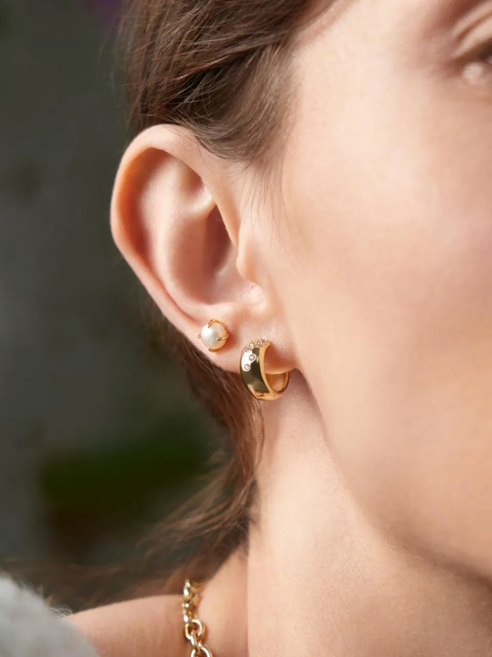 Ein Muss für jede trendige Schmuckkollektion: Entdecken Sie unsere frische Interpretation klobiger goldener Huggie-Creolen.