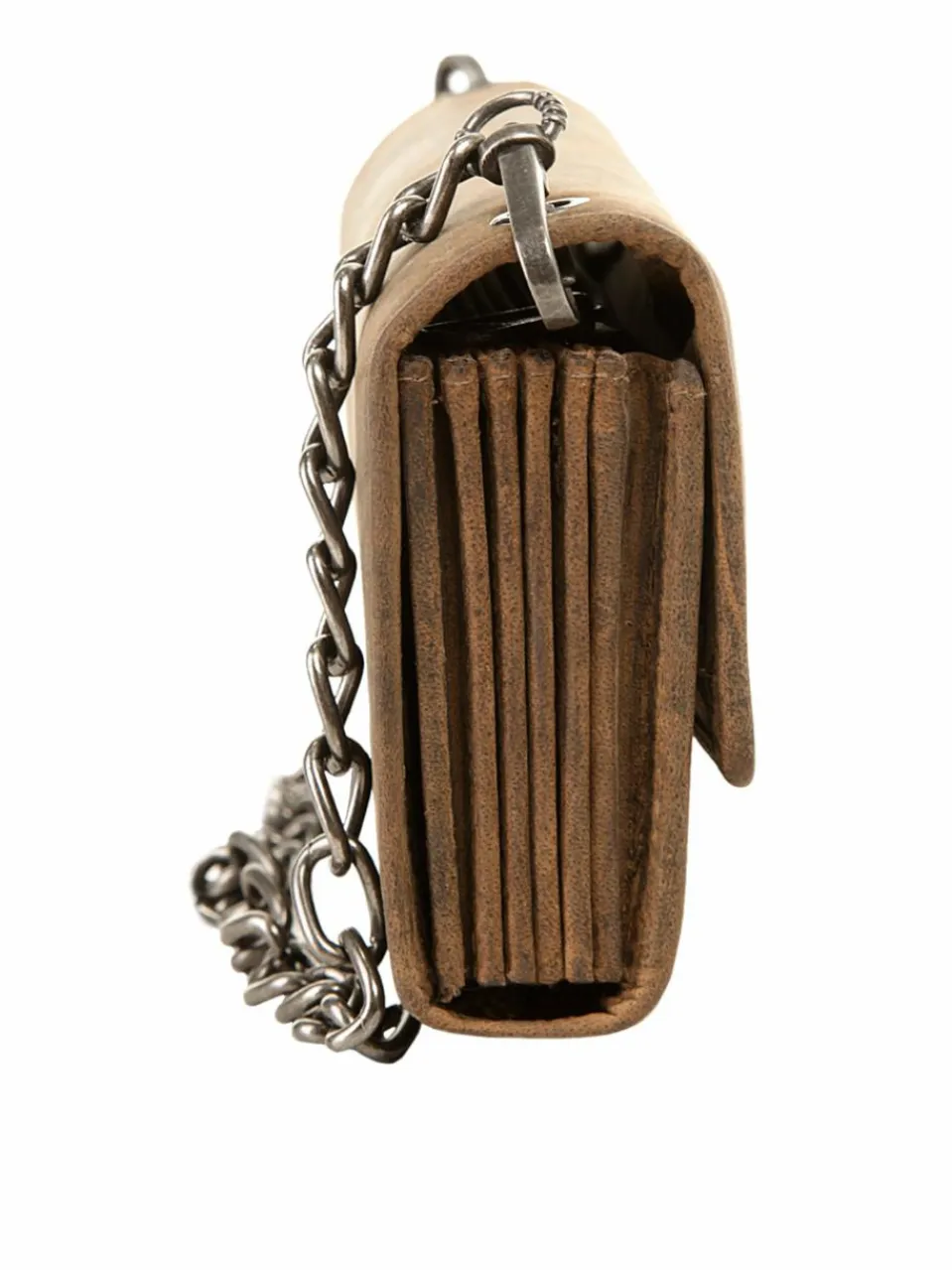 An einem lauen Sommerabend mal nur das Portemonnaie mitnehmen? Mit der Leder Geldbörse von Bagan kein Problem! Dank der anklippbaren Kette können Sie sie entspannt wie eine kleine Tasche tragen. Das ist nicht nur stylisch, sondern auch praktisch. Im Inneren sind 7 Fächer versteckt, 1 davon mit Reißverschluss für Münzen. Auch der Vintage Look unterstreicht die Extravaganz dieses kleinen Schmuckstücks.