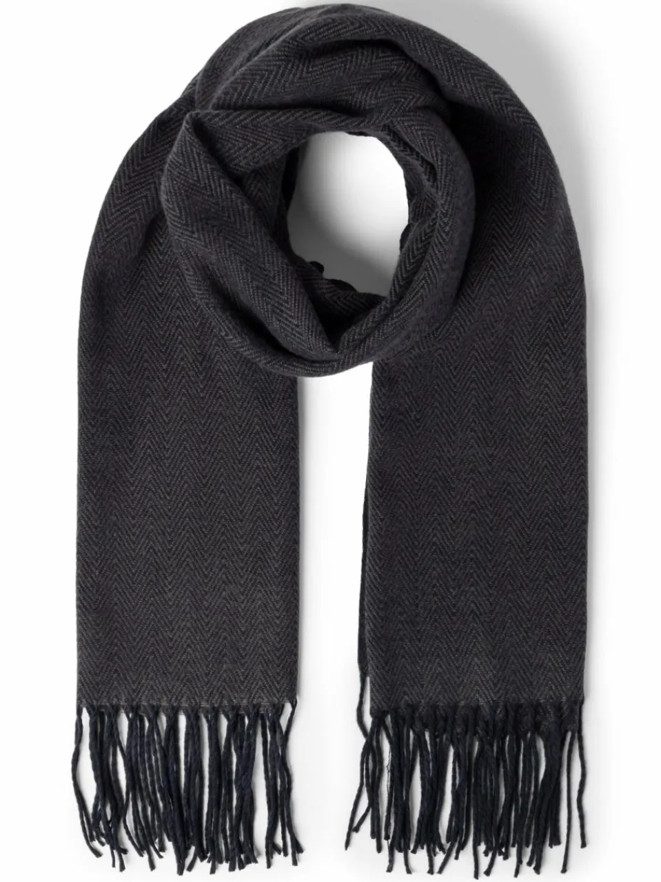 Feine Fransen vollenden das stilvolle Fischgrat-Design des Soho Schals von Barts.