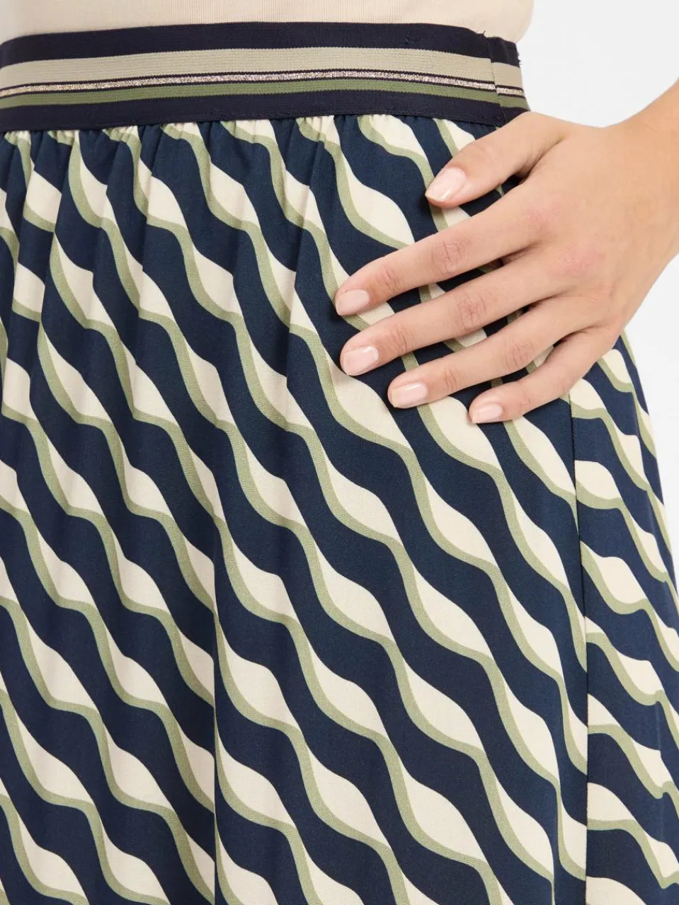 Der Stretchbund funkelt zart und greift die Farben gekonnt auf – damit erhält der Betty Barclay Rock einen harmonischen und stilvollen Gesamtlook.