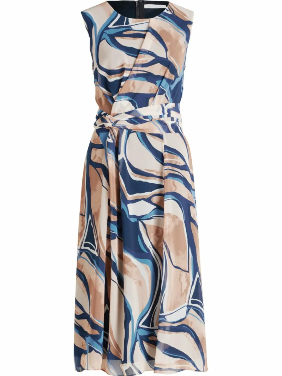 Dieses Chiffonkleid vereint Leichtigkeit, Stil und feminine Eleganz. Der fließende Stoff umspielt sanft die Figur, während das taillierte Design mit Bunddetail und Bindeband die Taille charmant betont. Der grafische Druck verleiht dem Kleid eine moderne,ausdrucksstarke Note, die sofort ins Auge fällt. Zarte Falten sorgen für zusätzliche Bewegung und eine edle Optik. Ein praktischer Reißverschluss auf der Rückseite erleichtert das An- und Ausziehen. Ideal für besondere Anlässe, aber auch ein stilvoller Blickfang im Alltag.