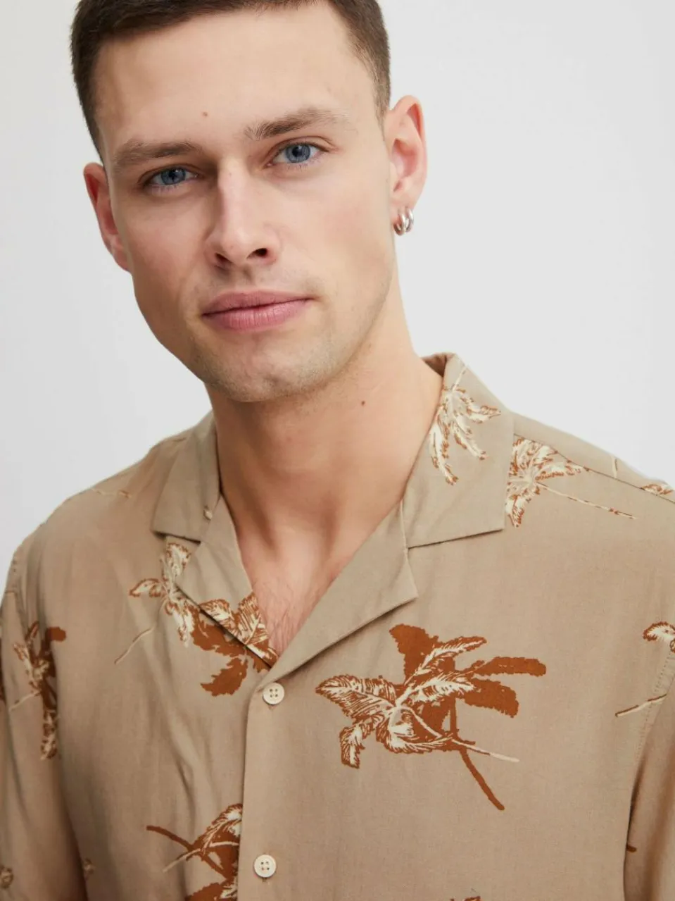 BLEND Hemden<Herren Kurzarmhemd beige gemustert