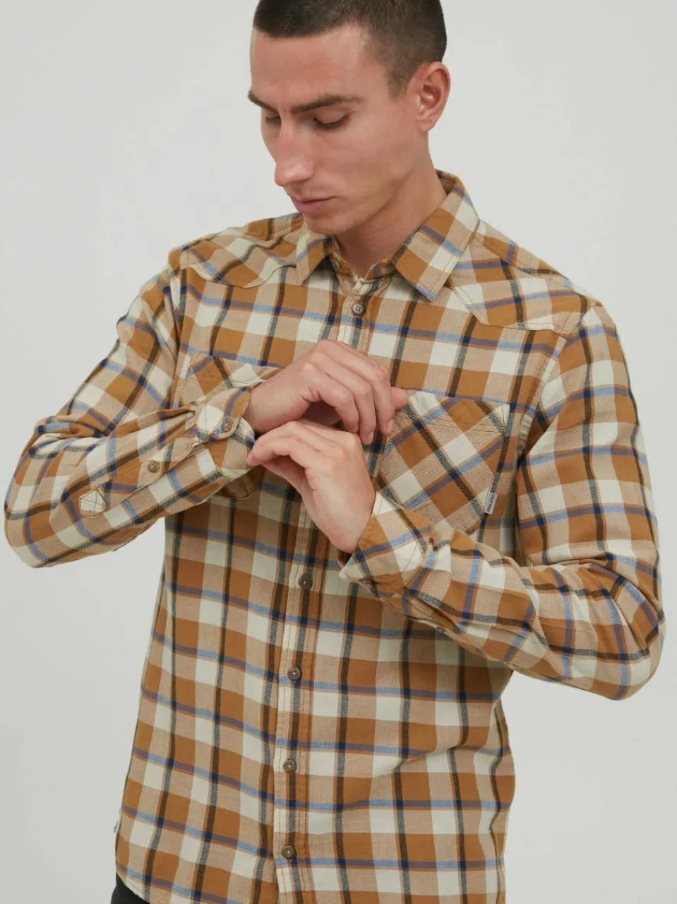BLEND Hemden<Herren Langarmhemd braun kariert