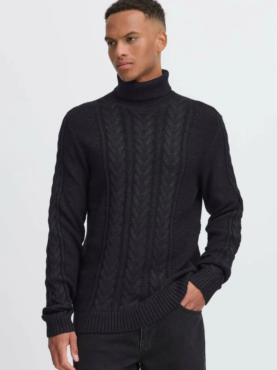 BLEND Pullover & Strickjacken<Herren Rollkragenpullover – BHBASIM schwarz strukturiert