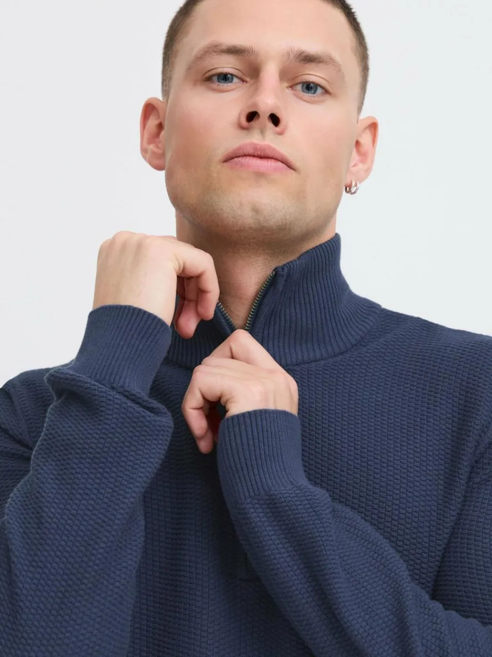 BLEND Pullover & Strickjacken<Herren Troyer – BHPullover blau uni