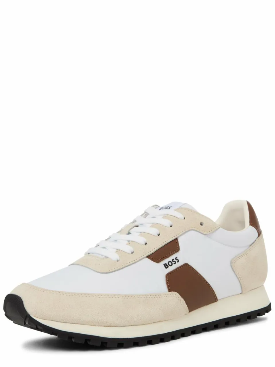 Die BOSS Sneaker Parkour Runn bestechen durch den coolen Material-Mix aus Leder, Textil und Synthetik und verleihen dem Look sofort sportiven Charme.