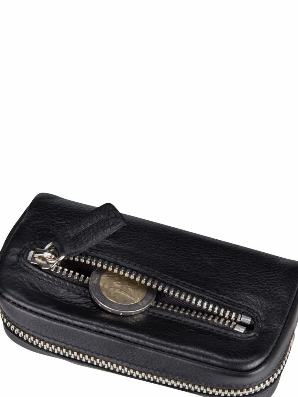 Leder nach Maß: Wunderbar weiches Schlüsseletui vom Traditionsunternehmen Braun Büffel aus edlem Rindleder. Mit 2 Schlüsselringen und rückseitigem Reißverschlussfach.