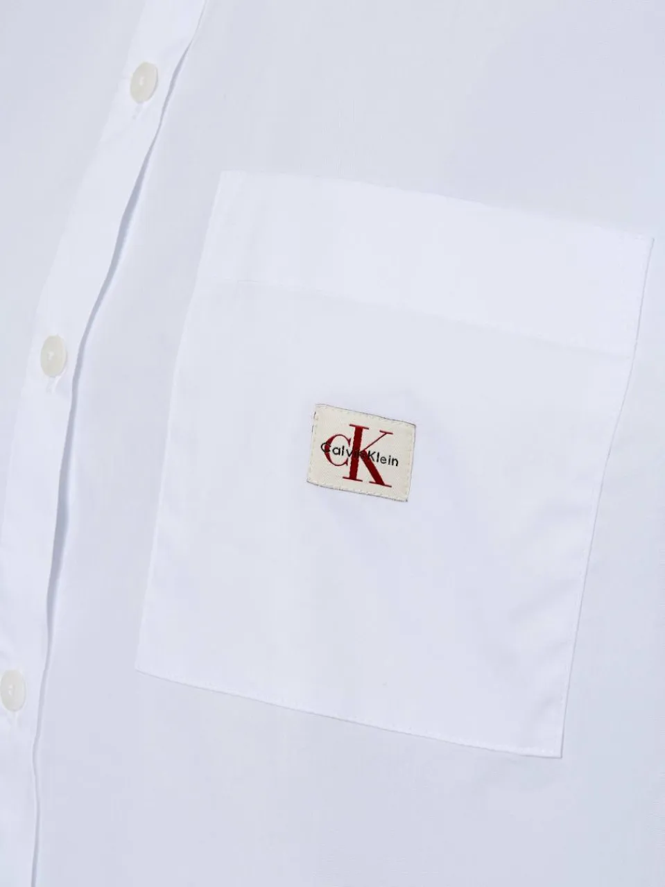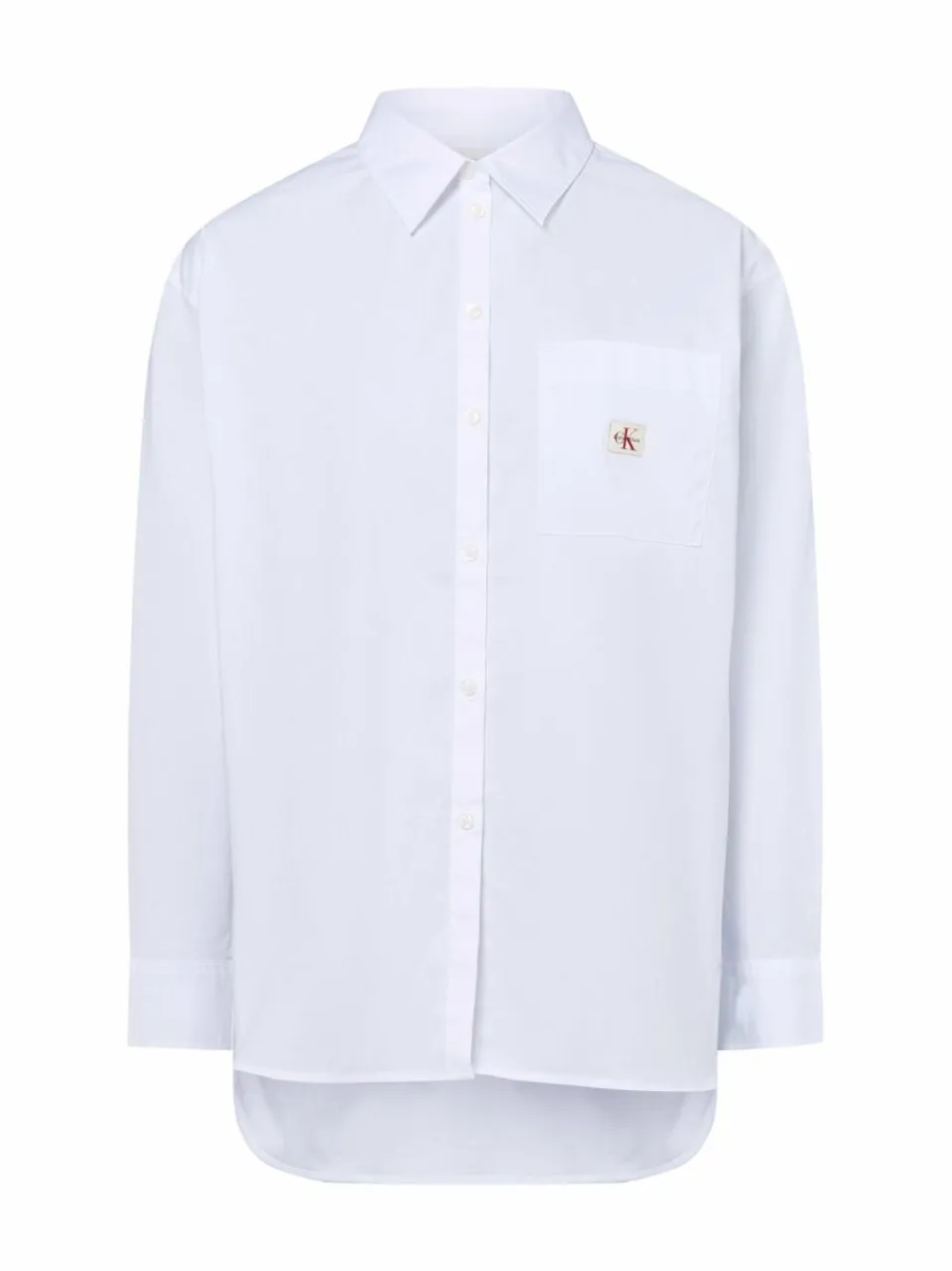 Moderne Hemdbluse von Calvin Klein Jeans in weiter Passform aus komfortablem Baumwoll-Stretch mit Hemdblusenkragen, langen Ärmeln mit Manschette und knöpfbarem Schlitz sowie einer aufgesetzter Brusttasche mit Logo-Patch.