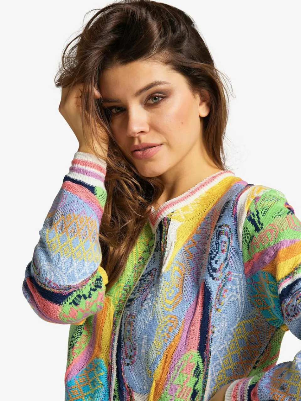 Carlo Colucci Pullover & Strickjacken<Damen Jacquardpullover – Curtoni weiß gestreift