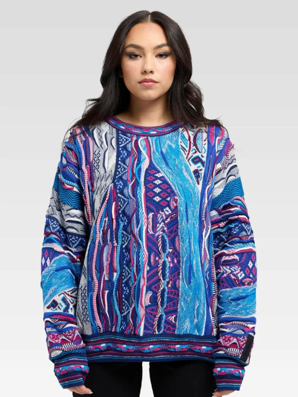 Carlo Colucci Pullover & Strickjacken<Damen Jacquardpullover – Di Nicola blau gemustert