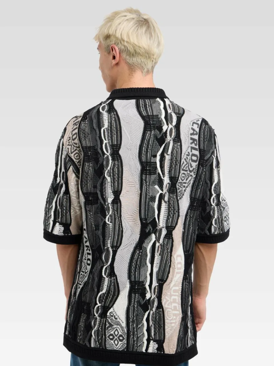 Carlo Colucci Pullover & Strickjacken|Poloshirts<Herren Poloshirt – Erhard schwarz gemustert