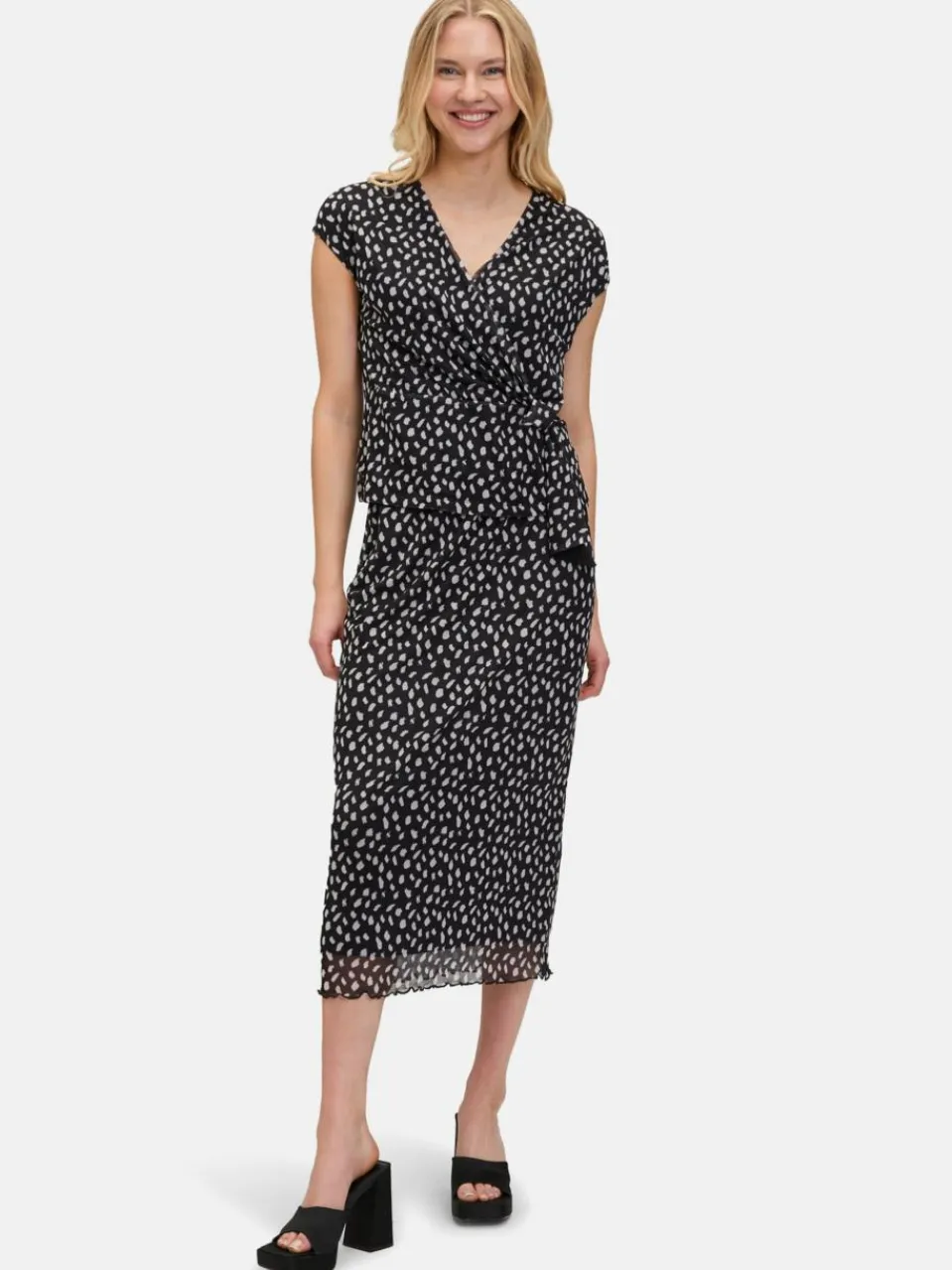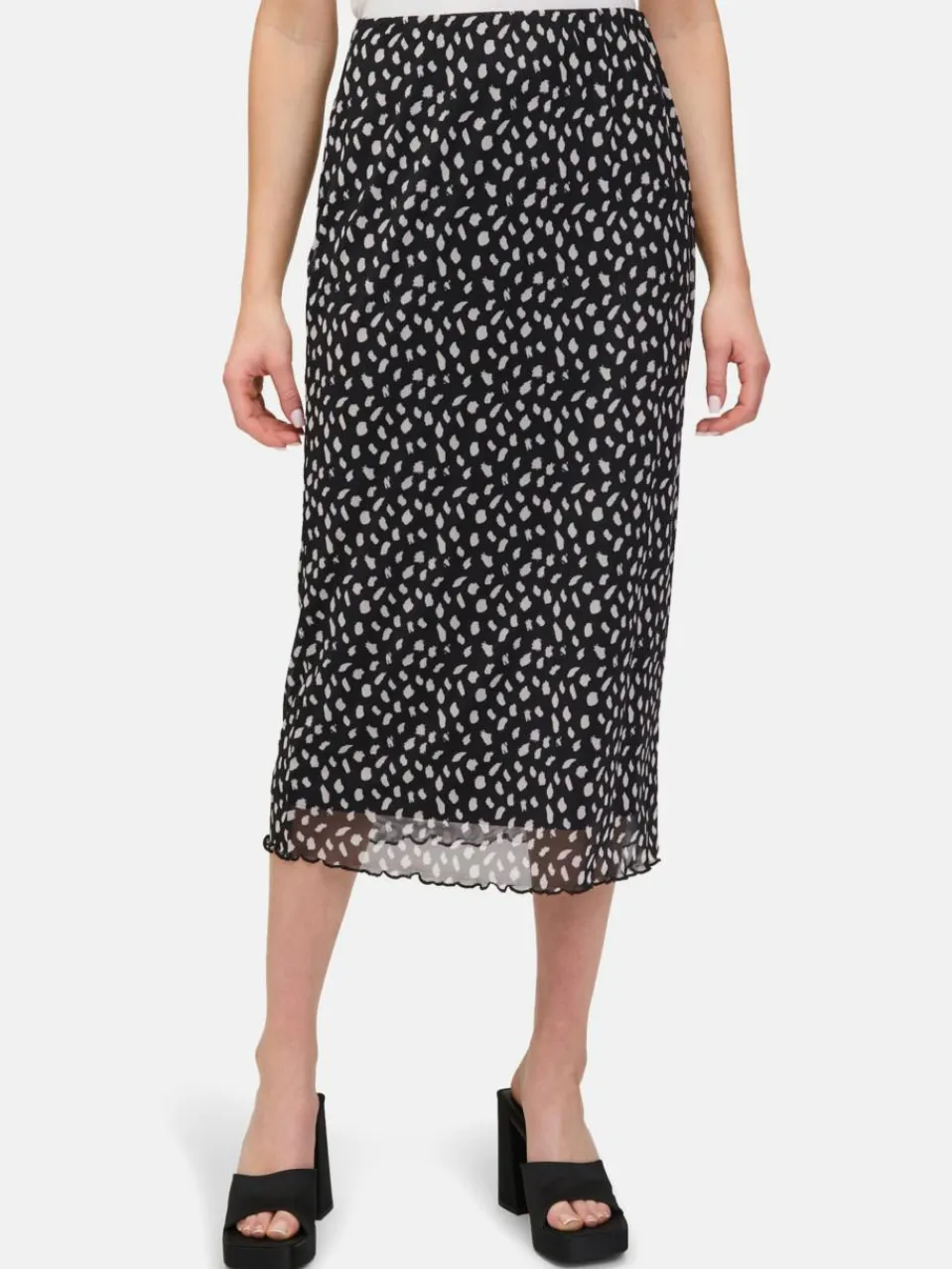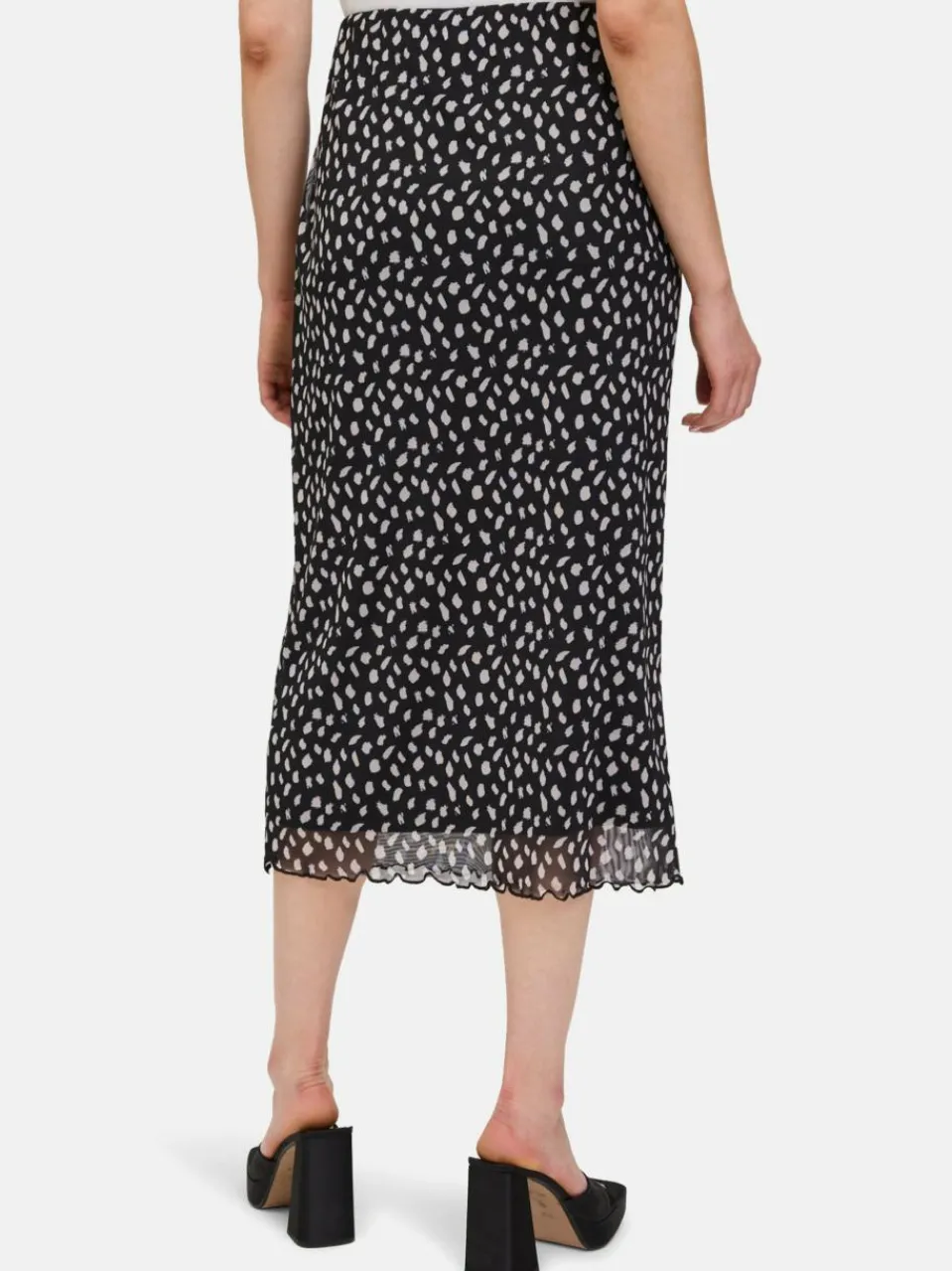 Das könnte Ihr neues Lieblingsteil werden! Dieser feminine Midirock mit verspieltem Punktemuster überzeugt durch seine figurbetonte Passform und den elastischen Gummizug in der Taille. Das angenehme Material sorgt für hohen Tragekomfort – ein stilvolles Modell, das Leichtigkeit und Eleganz perfekt vereint.