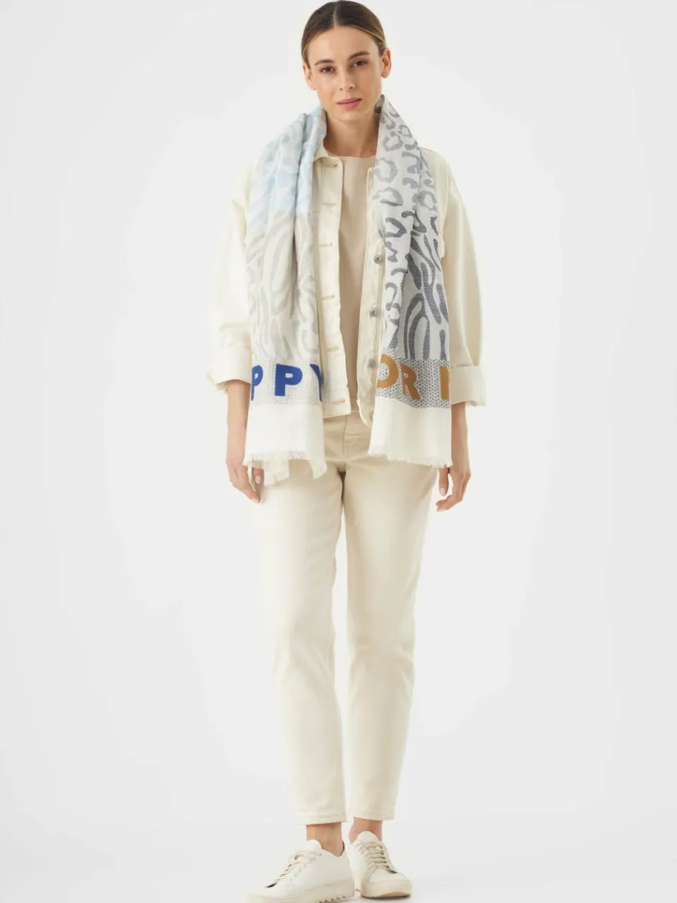 Das Leomuster hat sich als Dauertrend in der Mode längst etabliert. Im Sommer spielt es bei Accessoires wie diesem Schal mit coolem „HAPPY OR NOT“-Statement eine sehr stylische Rolle. Der in Fil Coupé-Technik gewebte Statement-Schal ist aus softer Baumwolle in modisch schmaler Form designt. Er ist softweich und angenehm leicht.