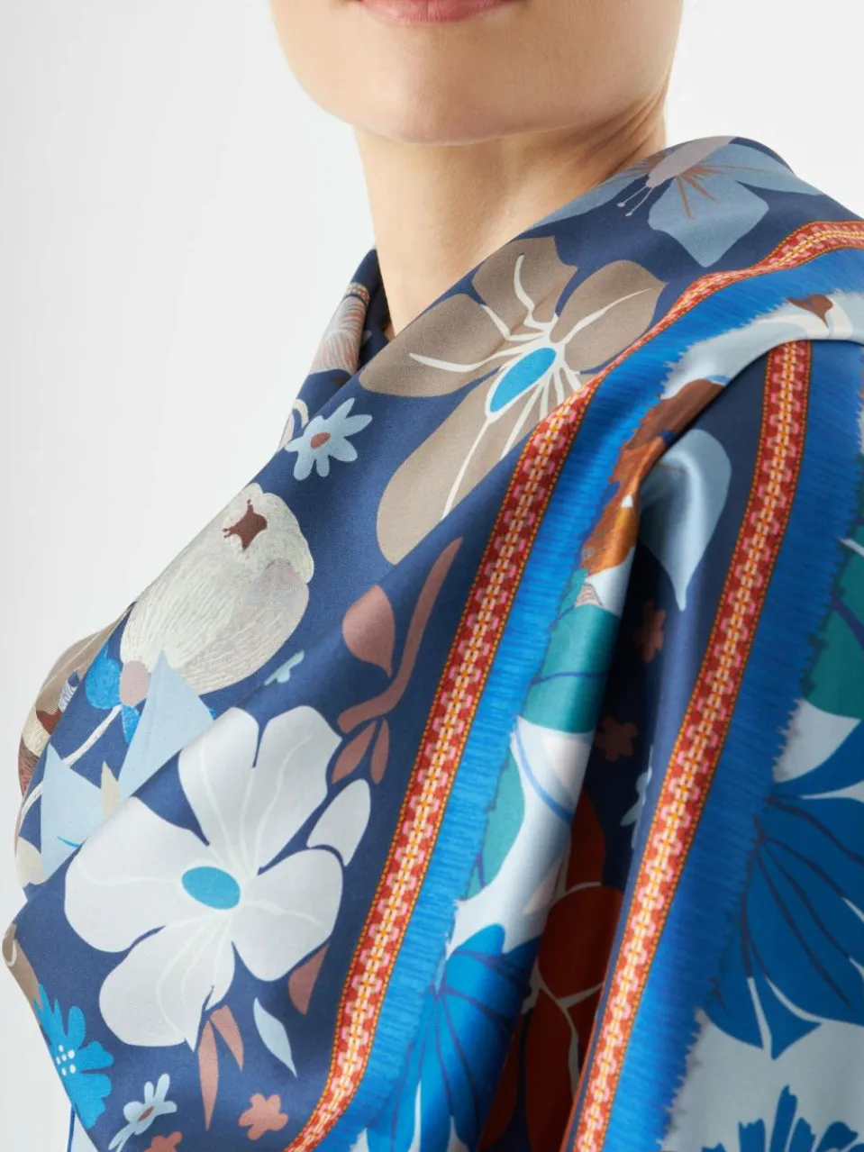 Dieses Premium Seidentuch mit zauberhaftem Blumenmuster ist immer ein edler Akzentgeber. Es lässt sich als Halstuch zum klassischen Business-Anzug stylen, veredelt Jeans-Looks und macht auch mal ins Haar ins Haar gebunden Stil-Karriere. Das beidseitig bedruckte Seidentuch wurde aus #1 PURE SILK in einer ausgewählten chinesischen Seidenmanufaktur aus wertvoller Seide gefertigt.