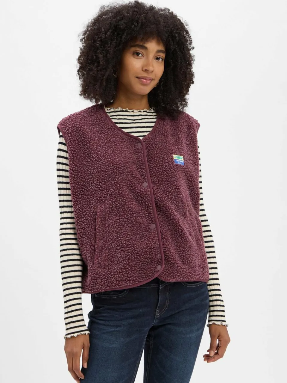 Ein unfassbar cooles Layering-Piece: Die boxy geschnittene Weste Hoktown von american vintage aus Teddy-Fur lässt sich extrem vielseitig kombinieren.