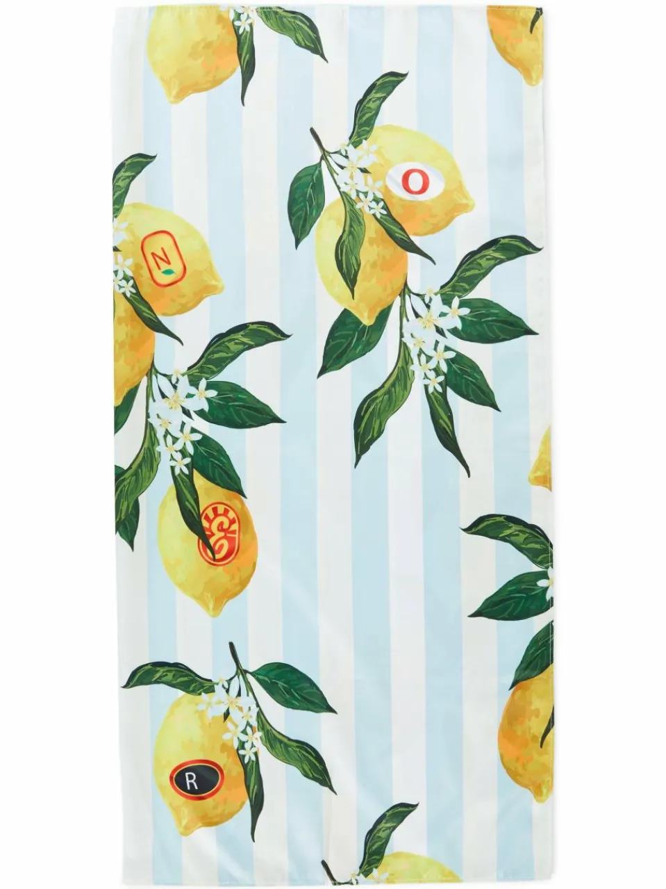 Ein echter Hingucker, der jeden Look erstrahlen lässt und sowohl um den Hals als auch im Haar oder an der Tasche eine gute Figur macht: das Another Cotton Tuch im Zitronen-Design.