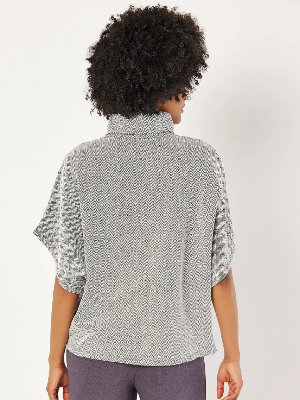 Ergänzen Sie Ihre Garaderobe mit diesem leichten Modell, das sowohl für das Büro als auch für die Freizeit geeignet ist. Es ist aus einer Baumwollmischung mit strukturiertem Chevron-Muster gefertigt und verfügt über einen gemütlichen Rundhalsausschnitt und kurze Fledermausärmel.