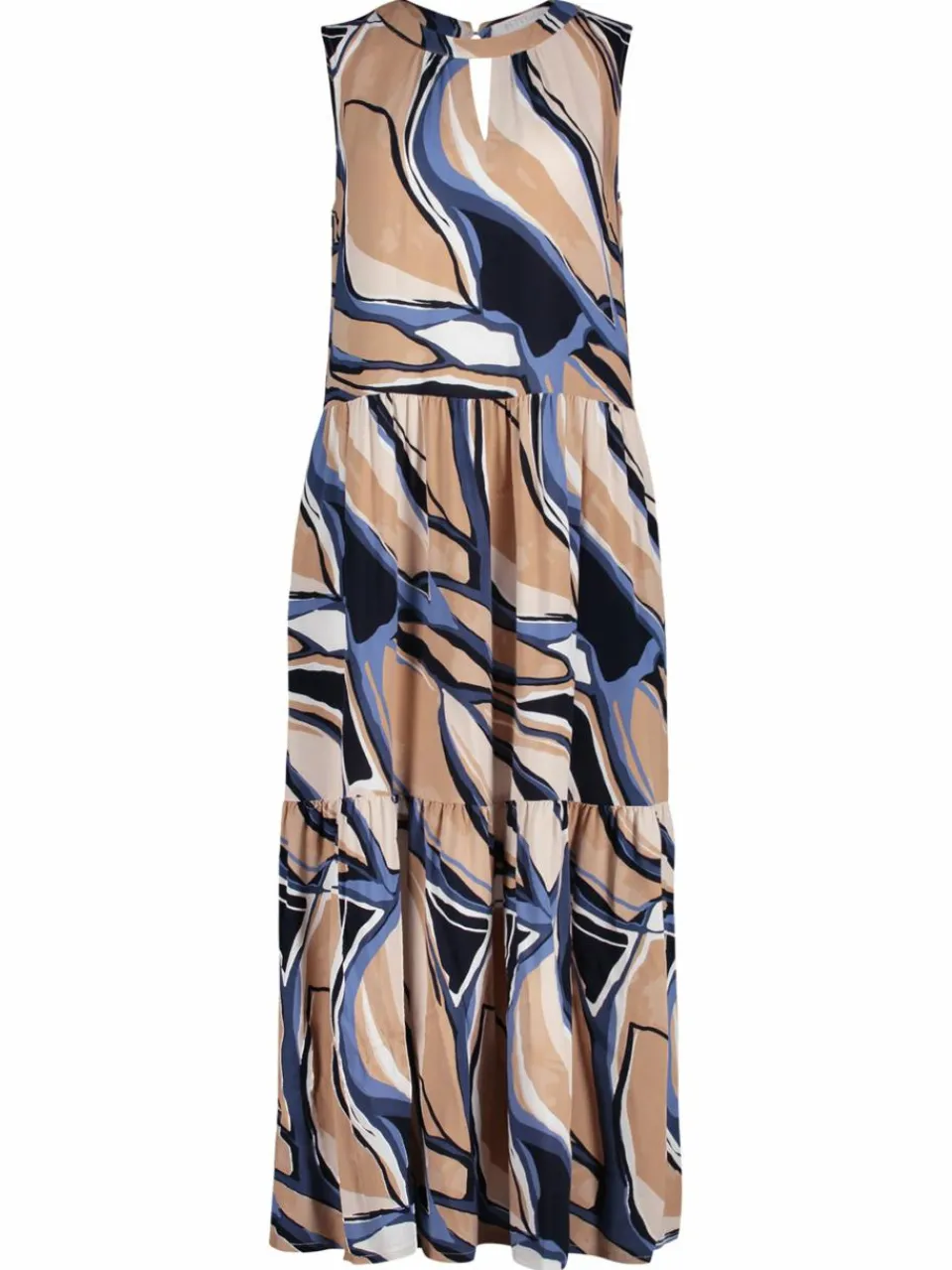 Cool und lässig! Dieses sommerliche Kleid überzeugt mit einem modernen, grafischen Muster und einer figurumspielenden Passform, die angenehm leicht zu tragen ist. Die geschickt platzierte Nahtführung und der Schlitz sorgen für einen stylischen Look und mehr Bewegungsfreiheit. Praktische Nahttaschen und eine Knopfschlinge hinten runden das legere Design perfekt ab. Ideal für entspannte Tage mit einem Hauch Coolness.