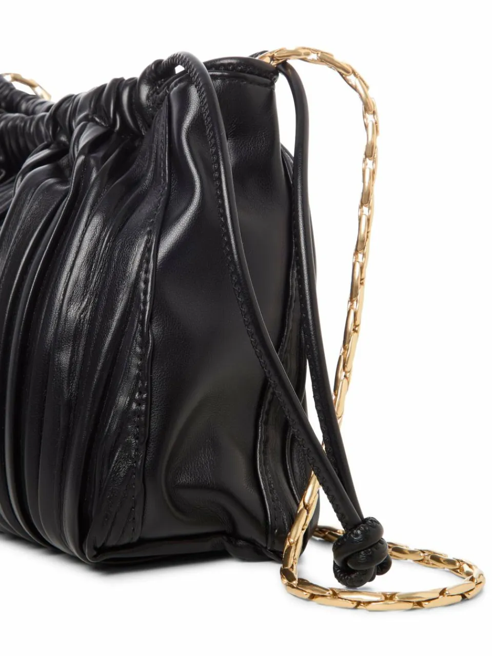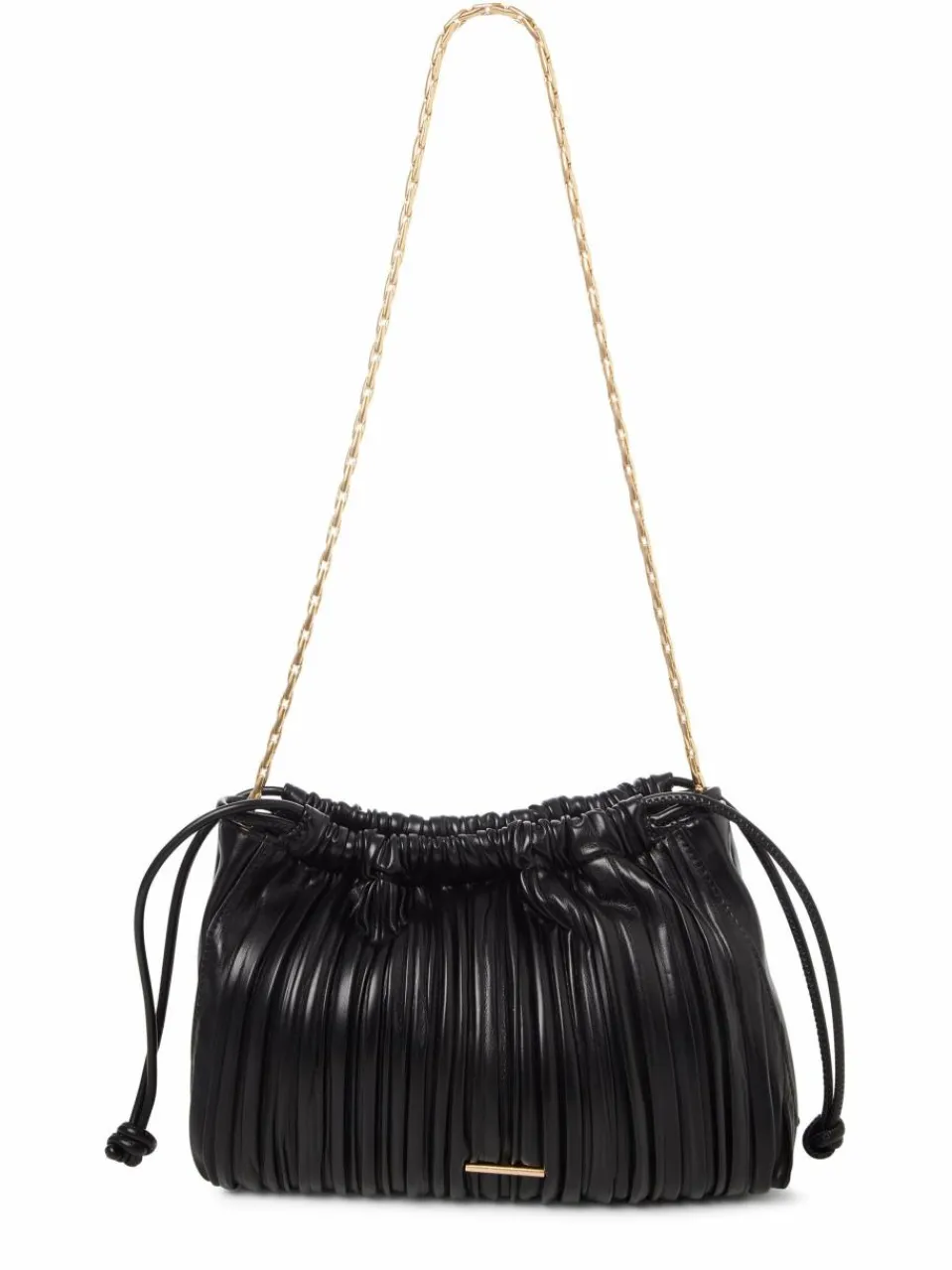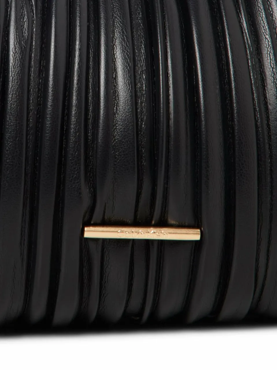 Die Umhängetasche von Calvin Klein aus Kunstleder im Plissee-Design mit Ketten-Schulterriemen verbindet moderne Eleganz mit trendigem Statement.