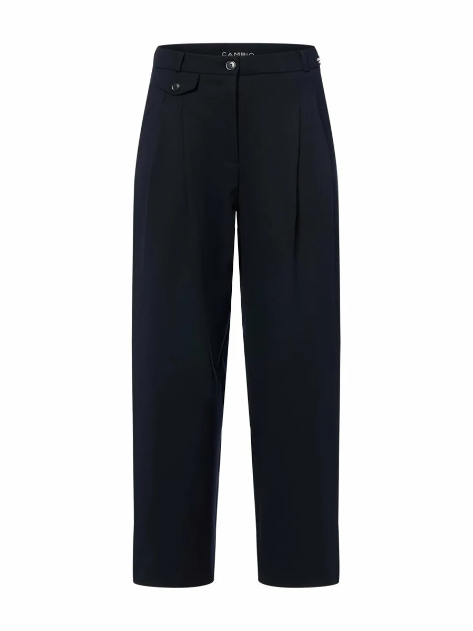 Die Bundfaltenhose Erin von Cambio setzt mit weitem verkürztem Bein und stretchiger Qualität auf ein smartes Design mit Komfort-Finish.