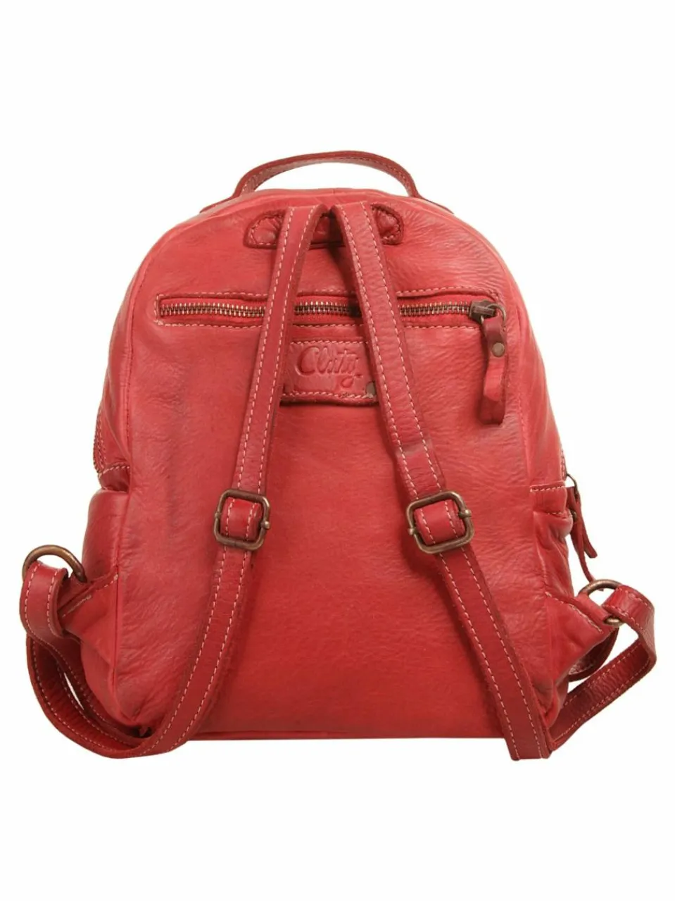 Klein. Süß. Schick. Der Damen Leder Rucksack von Cluty im angesagten Vintage Look ist die ideale Begleitung bei Stadtbummel oder kleinen Ausflügen. In dem großen Hauptfach finden Smartphone, Portemonnaie und Wasserflasche easy ihren Platz. Wertvolles tragen Sie geschützt & körpernah bei sich – ein Rückfach mit Reißverschluss sorgt dafür. Charmanter Eyecatcher: das verspielte Design mit 3 kleinen Außentaschen und 2 Seitentaschen.