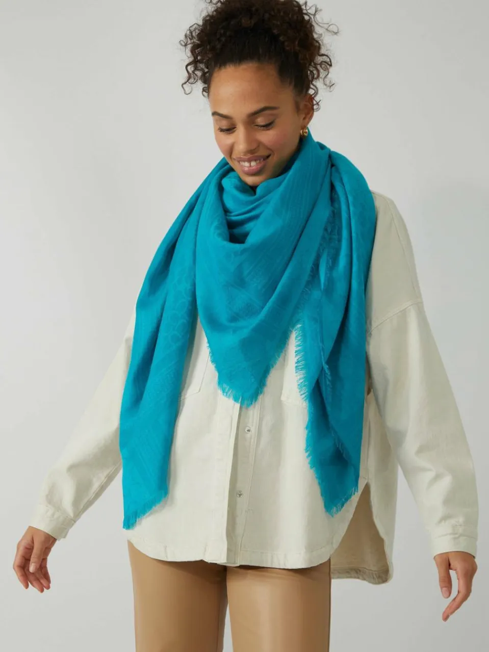 Dieses XL-Tuch aus hochwertigem Baumwoll-Modal-Mix ist unser Signature Piece mit dezent eingewebtem Monogramm-Muster. Weil das Premium Tuch den ultimativen CODELLO-Look widerspiegelt, ist es nicht nur in saisonalen Trendfarben wie diesem leuchtenden Türkis erhältlich, sondern auch in klassischen Farben, die deine Garderobe optimal abrunden. Wir nennen die edle Verarbeitung von Baumwolle und Modal.