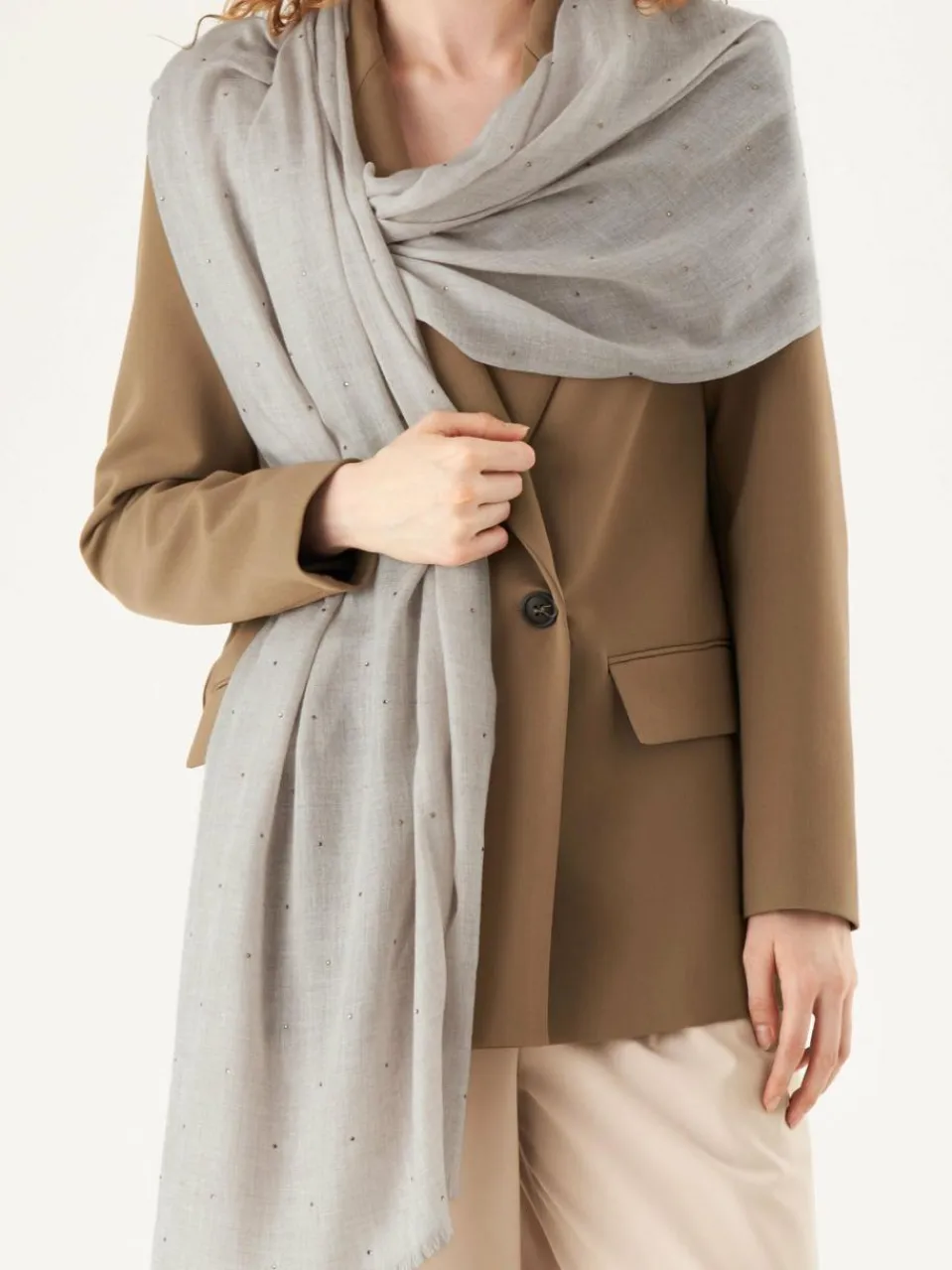 Nicht nur an Weihnachten und Silvester lieben wir alles, was funkelt und glitzert. Dieser feine und softweiche Glamour-Schal aus Modal und Wolle ist immer ein Highlight im Look. Allover mit funkelnden Strasssteinchen designt, kannst du den hauchzarten Schal mit eingewebten Glanzfäden bei festlichen Anlässen auch super als Stola tragen. Der Schal wurde in einer kleinen indischen Manufaktur gewebt und erfüllt hohe Ansprüche an Qualität und Verarbeitung.