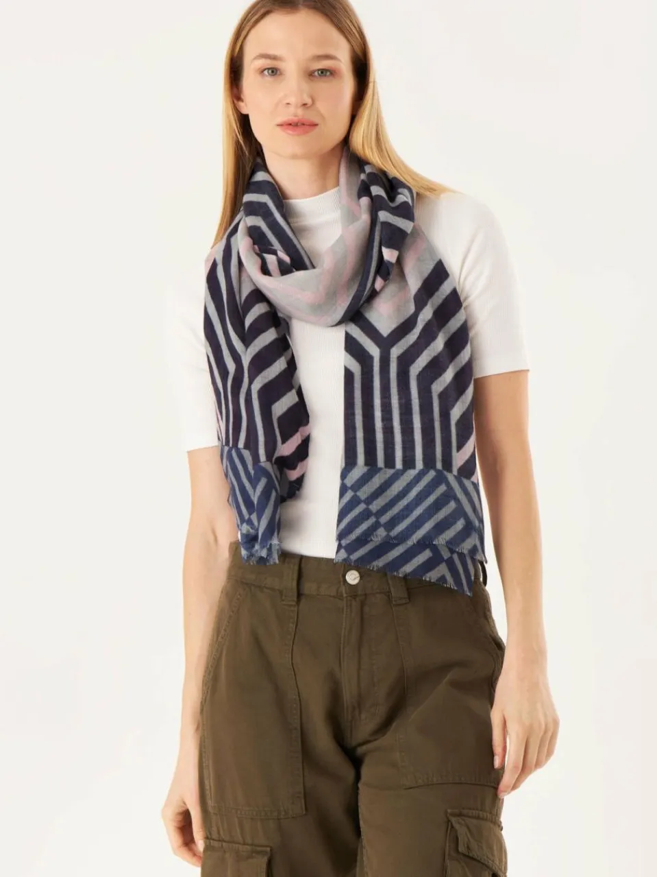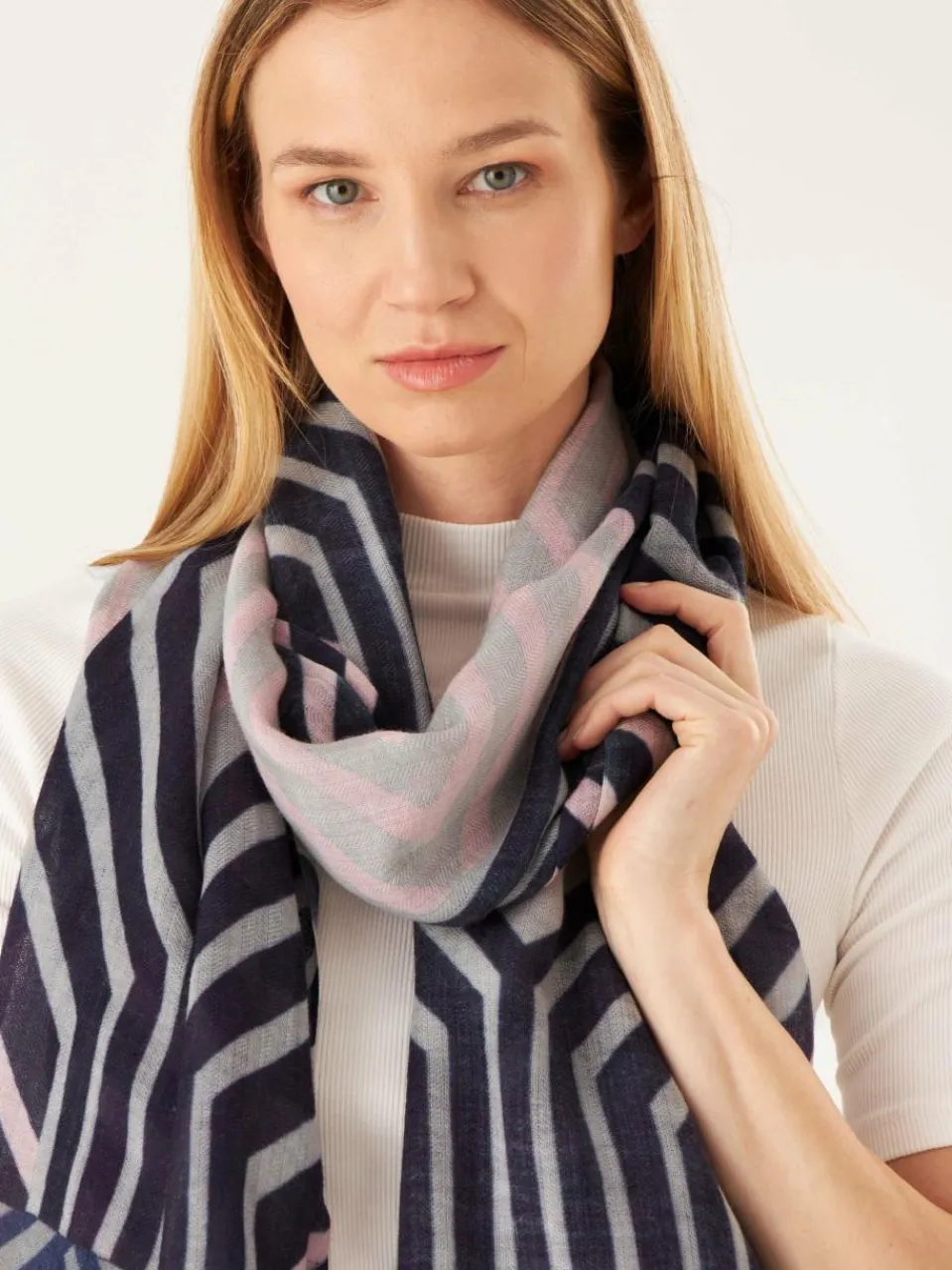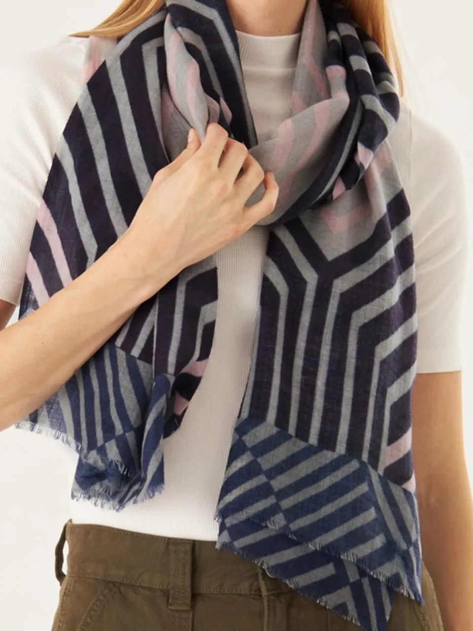 Dieser grafisch inszenierte Unisex-Schal ist ein zeitloses Lieblingsstück, das von allen getragen werden kann. Er wurde aus unserer #15 WOOL BLEND Qualität gefertigt und eignet sich für Indoor- und Outdoor-Stylings. WOOL BLEND verbindet die beiden Fasern Wolle und Modal. Wolle gibt den Produkten Wärme und Volumen, Modal Weichheit. Der Griff ist typisch wollig und hat Stand. Wir bieten diese Qualitätsmischung bevorzugt in den Winter-Kollektionen an.