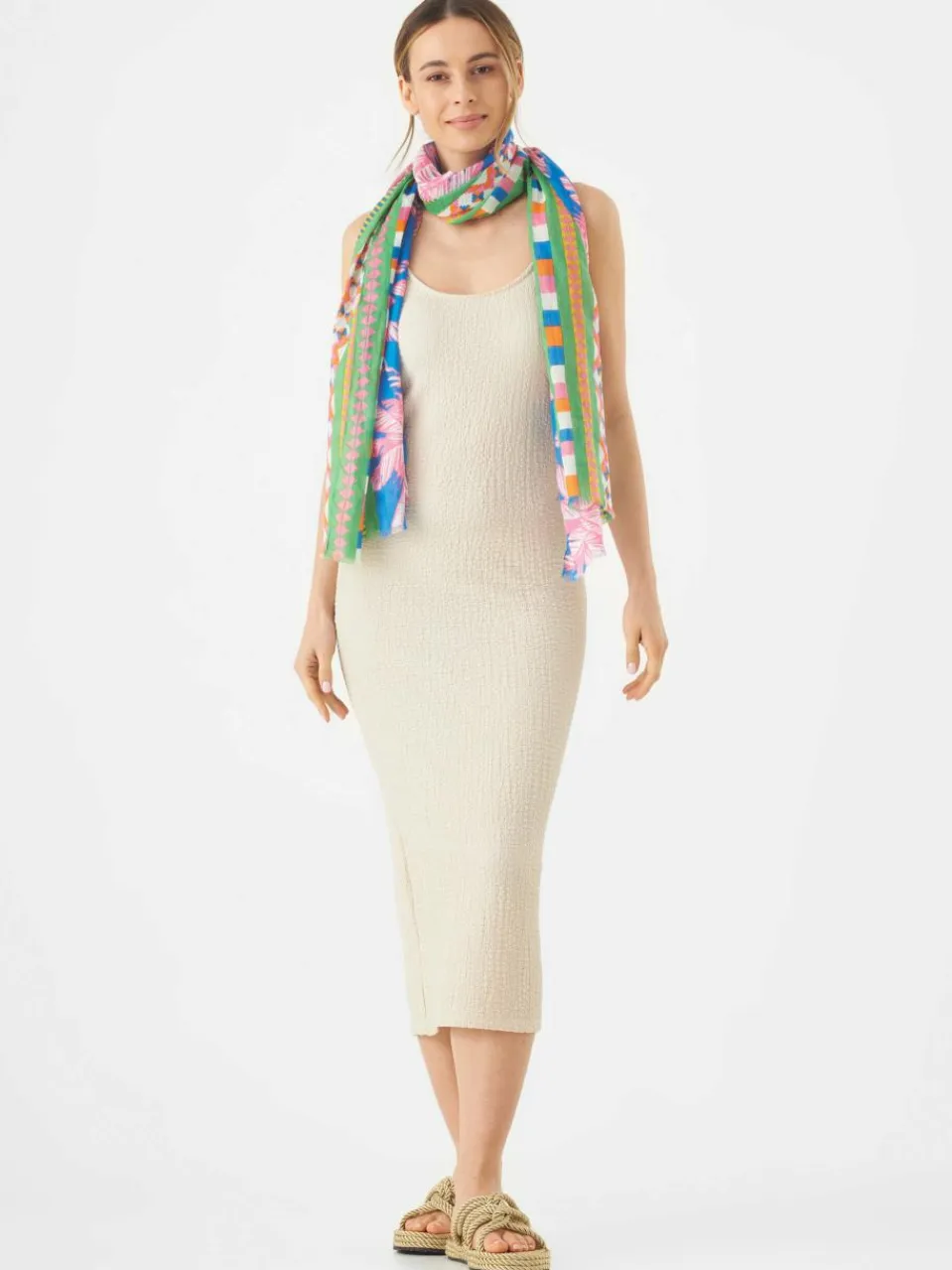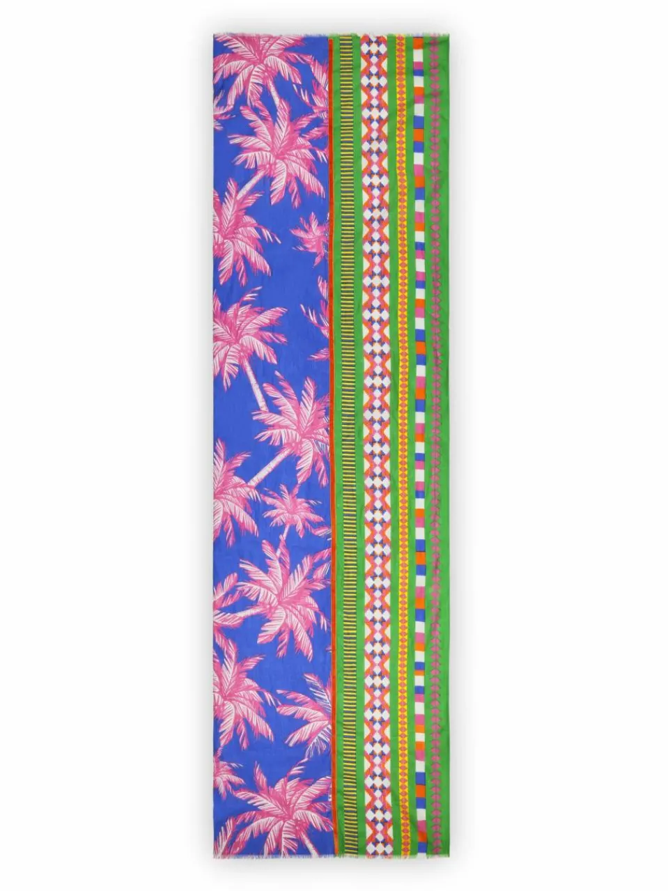 Bei diesem Schal aus #20 ORGANIC COTTON akzentuiert ein mittiges Samtband den stylischen Mix von Ikat- und Palmen-Print. Kombinieren lässt sich der angenehm leichte Schal variantenreich. Er passt zu allen Sommer-Looks, kommt aber auch ins Haar drapiert oder als Gürtel getragen super an. Unsere Bio-Baumwolle ist GOTS-zertifiziert. Ihr Anbau erfolgt durch Kleinbetriebe und verbraucht weniger Wasser.