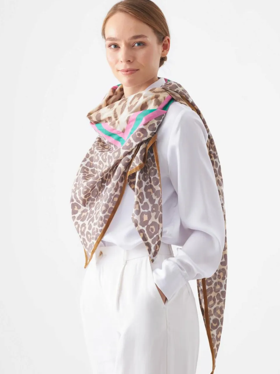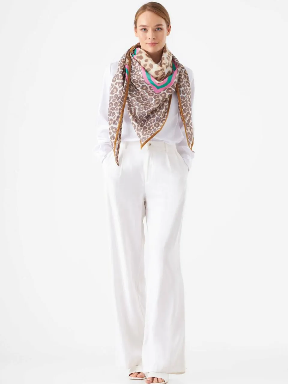 Leo ist ein Muster-Klassiker, der in der Mode immer wieder für Furore sorgt. Wir haben den coolen Animal-Print auf einem Dreieckstuch aus #20 PURE COTTON inszeniert. Besonders stylisch wirkt dein Look, wenn du das Triangle-Tuch als Eyecatcher zu monochromen Outfits in Schwarz, Braun oder Camel trägst. Unsere Baumwolle ist GOTS-zertifiziert. Ihr Anbau erfolgt durch Kleinbetriebe und verbraucht weniger Wasser. Auch der Einsatz von Pestiziden wird weitestgehend ausgeschlossen.