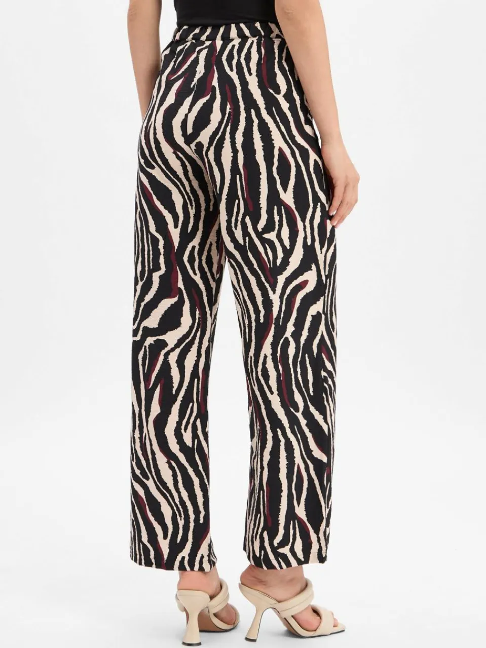 Der weite Beinverlauf, die fein gecrinkelte Viskose-Mix-Qualität und das modisch interpretierte Animal-Muster prädestinieren die Hose von comma casual identity zum easy Statement-Style für die Freizeitgarderobe.