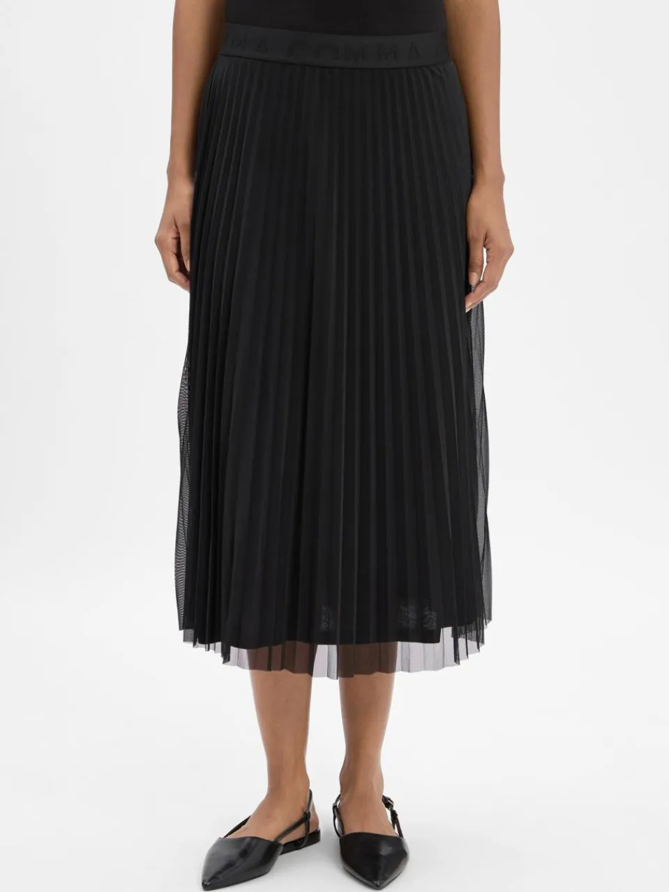 Der comma Rock ist mit seiner feinen Mesh-Qualität, den Falten und der ausgestellten Form ein wahrer Figurschmeichler und Styling-Allrounder.
