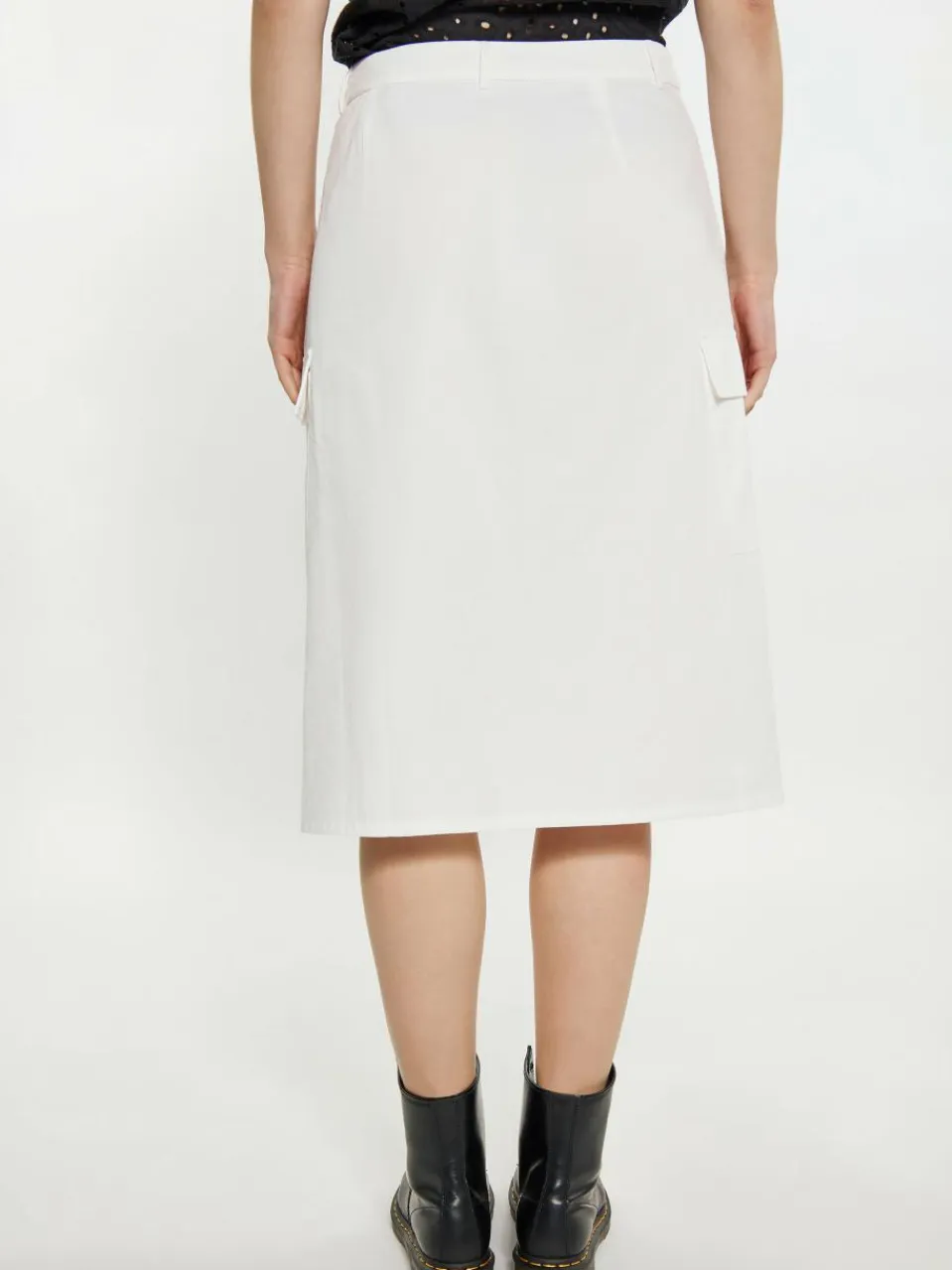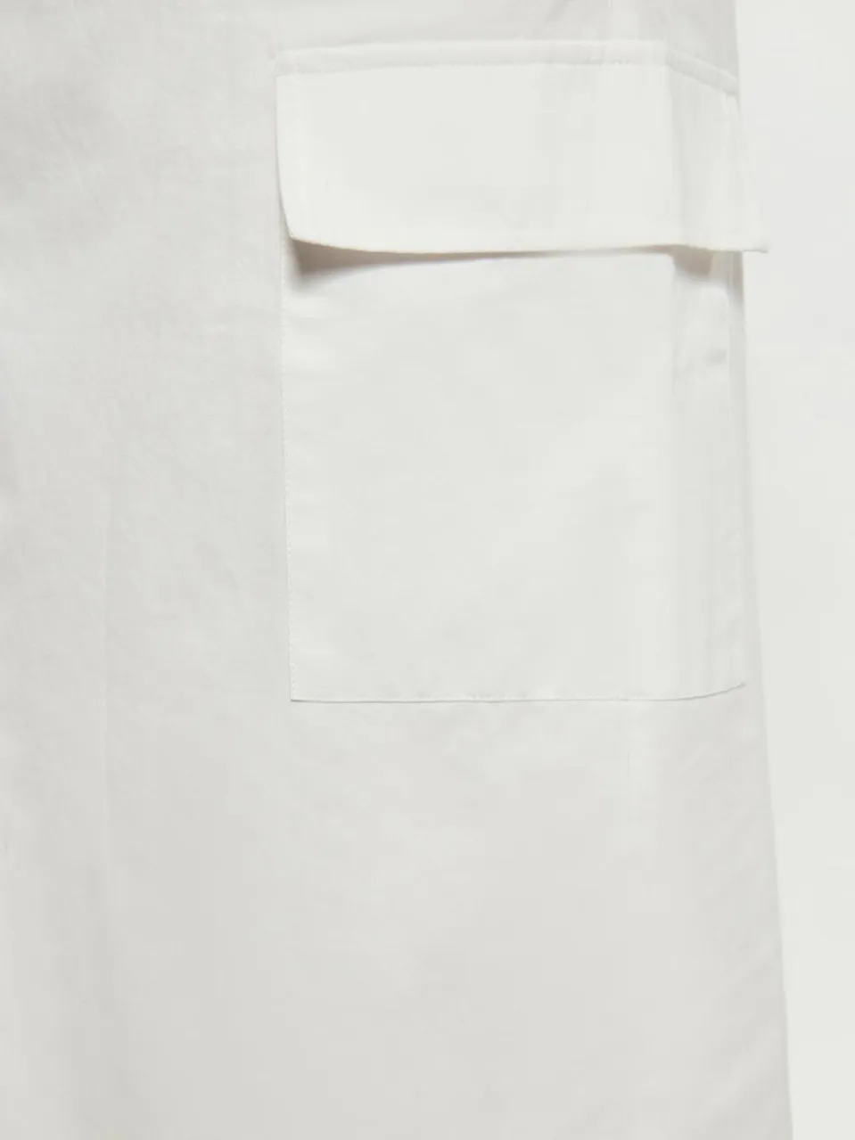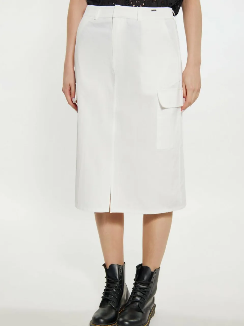 Accentuate your wardrobe with this cotton skirt with a back slit for freedom of movement. There are two functional patch cargo pockets on the front, which add utility to the minimalist design. The skirt will be a great element of a summer styling.
