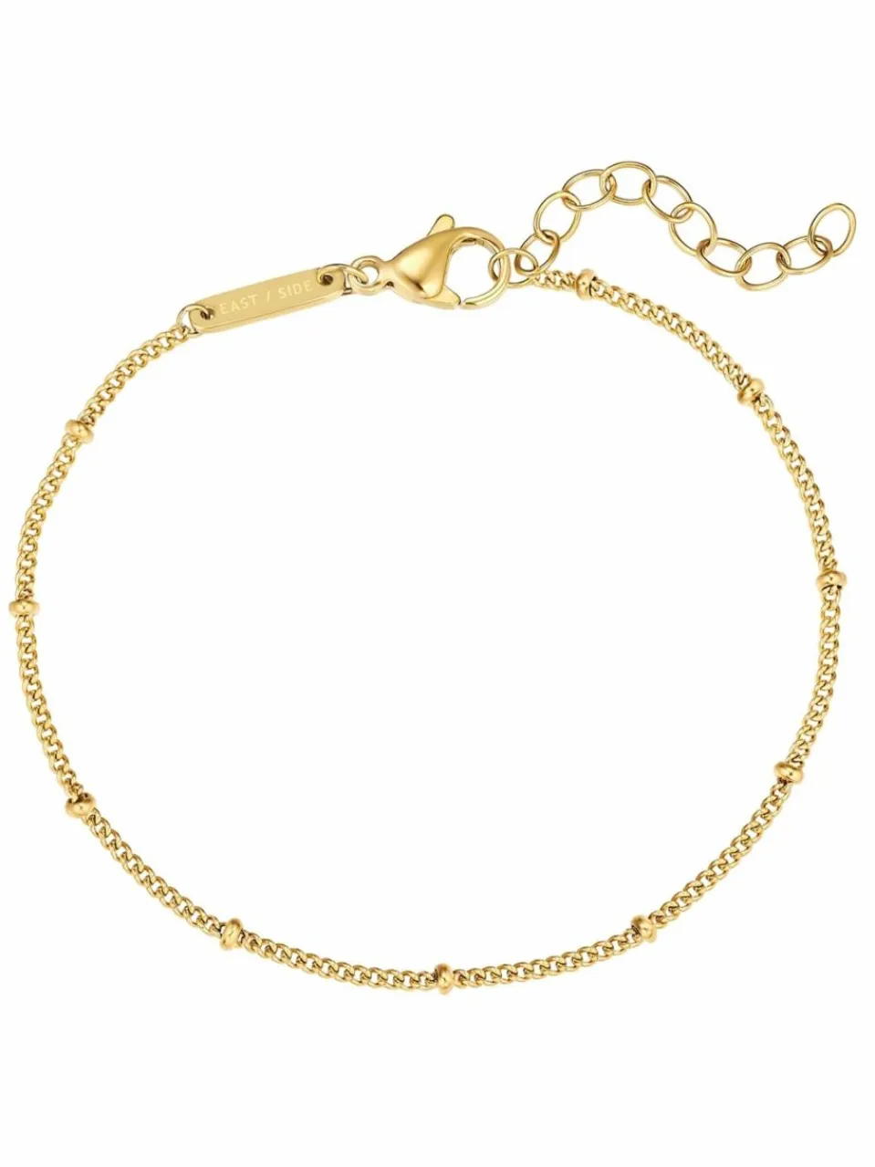 Sie suchen ein Armband, das als Solist ebenso glänzt wie im Layering mit anderen Armbändern oder in Kombination mit Ihrer Lieblingsuhr? Dann ist dieses Bracelet des jungen Labels EASTSIDE Ihr neues Lieblingsstück. Minimalistisch-schlicht schmiegt sich das Ankerkettchen an Ihr Handgelenk, unterbrochen von zarten, kleinen
