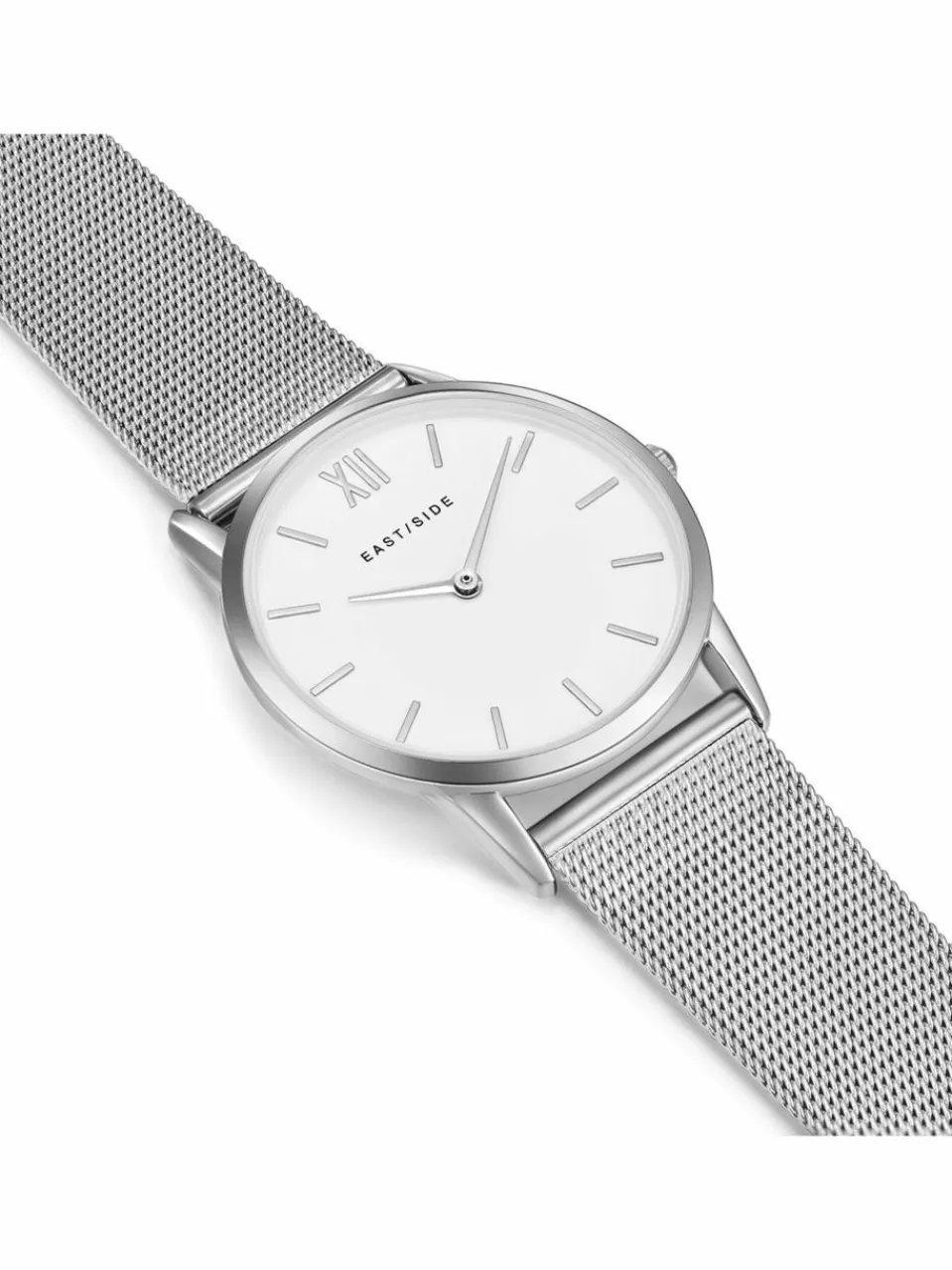 Subtile Vornehmheit ist das Markenzeichen des New Yorker Stadtteils Eastside – ebenso wie des gleichnamigen Uhrenlabels Eastside. Dieses bezaubernde Damen-Modell besinnt sich auf traditionelles Uhrendesign abseits von Opulenz und Glamour. Understatement ist angesagt! Ton in Ton gehalten, vereinen das Gehäuse mit hochwertig verschraubtem Edelstahlboden und das aufwändig gearbeitete Edelstahl-Milanaise-Armband kühle Eleganz und strapazierfähige Materialien.