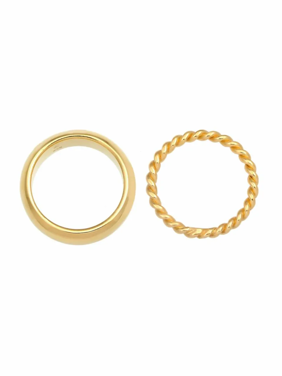 Dieses schlichte Ring Schmuckset lässt sich nach Belieben kombinieren. Mit der polierten Oberfläche ziert der glänzende Bandring als zeitloses Schmuckstück jede Handbewegung. Kombiniert mit dem Stacking Ring im gedrehten Design wird dieses Set ein stilvoller Begleiter. Dieses wunderschöne Accessoire ist perfekt für deinen Alltagslook.