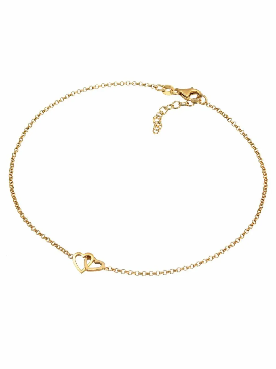 Verspielte Fuß Kette im romantischen Herzchen Look. Dieses verspielte Schmuckstück ist mit zwei ineinander verschlungenen Herzen, als Zeichen der Verbundenheit zweier Menschen. Ein filigranes Accessoire was den sommerlichen Look perfekt unterstreicht.