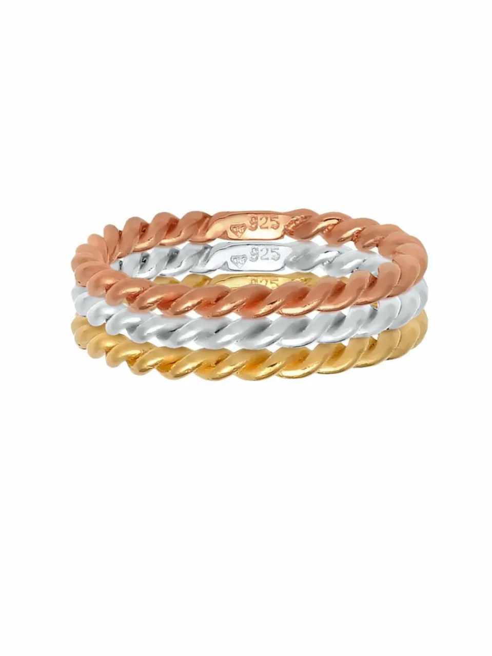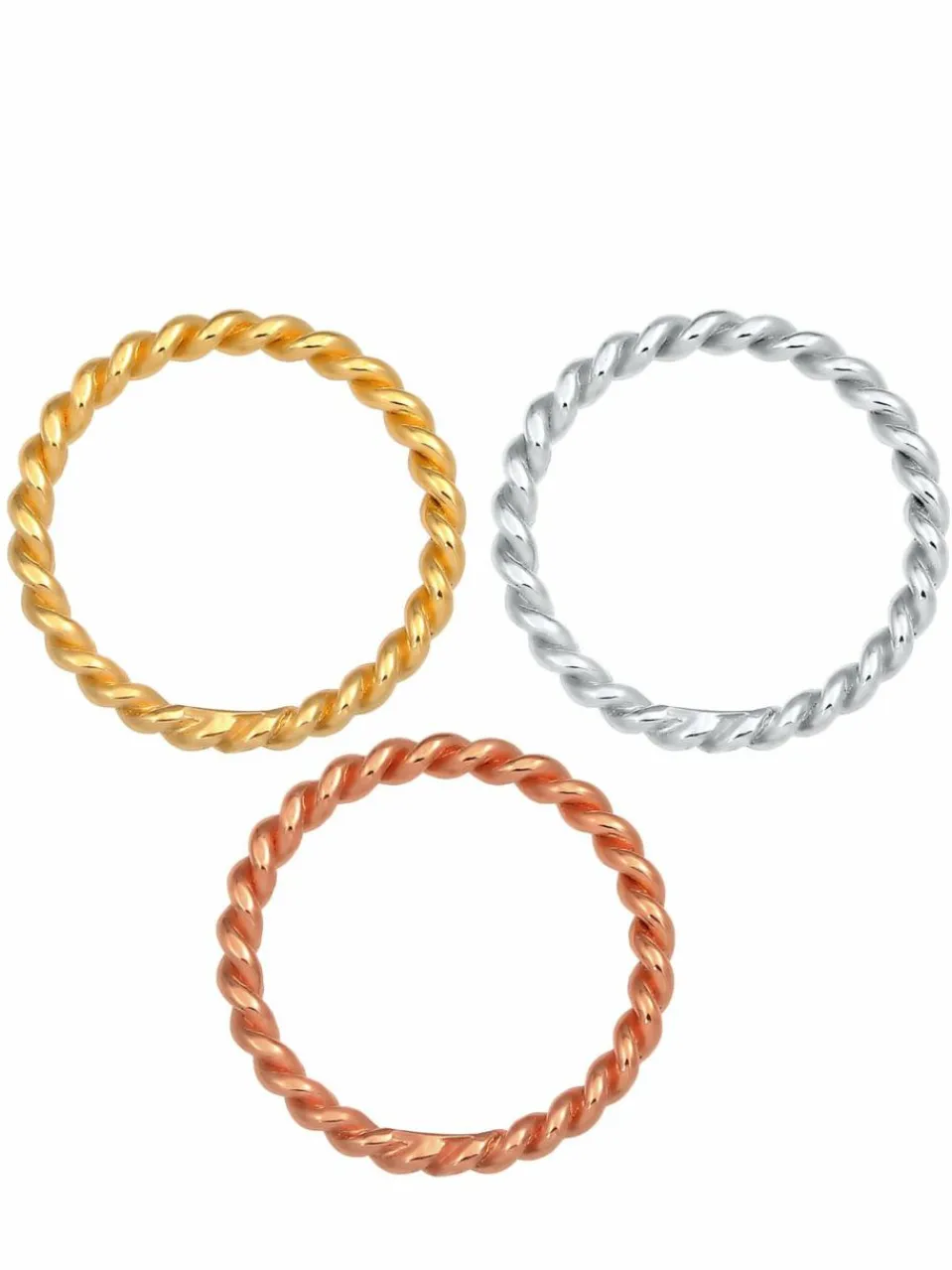 In diesem Schmuckset werden trendige Materialien und Formen zum stylischen Allrounder kombiniert. Die drei tricolor Ringe aus vergoldetem 925er Sterling Silber, 925er Sterling Silber und rosé-vergoldetem 925er Sterling Silber sind das perfekte Accessoire für jeden Anlass. Die Ringe lassen sich sowohl einzeln als auch in Kombination miteinander oder mit auffälligem Statement-Schmuck tragen und geben dir alle Möglichkeiten deinen Style individuell zu entfalten. Egal, welchen Stil du verkörperst, dieser Schmuck ist so wandelbar wie du.Weitere Hilfe zur Ringgröße:Angegebene Größe in mm entspricht Ring Innen-Umfang, Umrechnung in Ring Durchmesser Ø wie folgt:52mm Umfang = 16,5mm Ø54mm Umfang = 17,2mm Ø56mm Umfang = 17,8mm Ø58mm Umfang = 18,4mm Ø