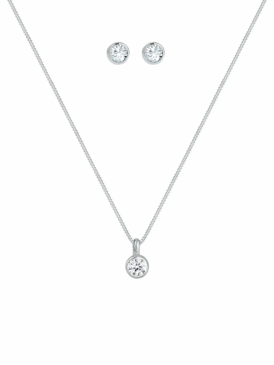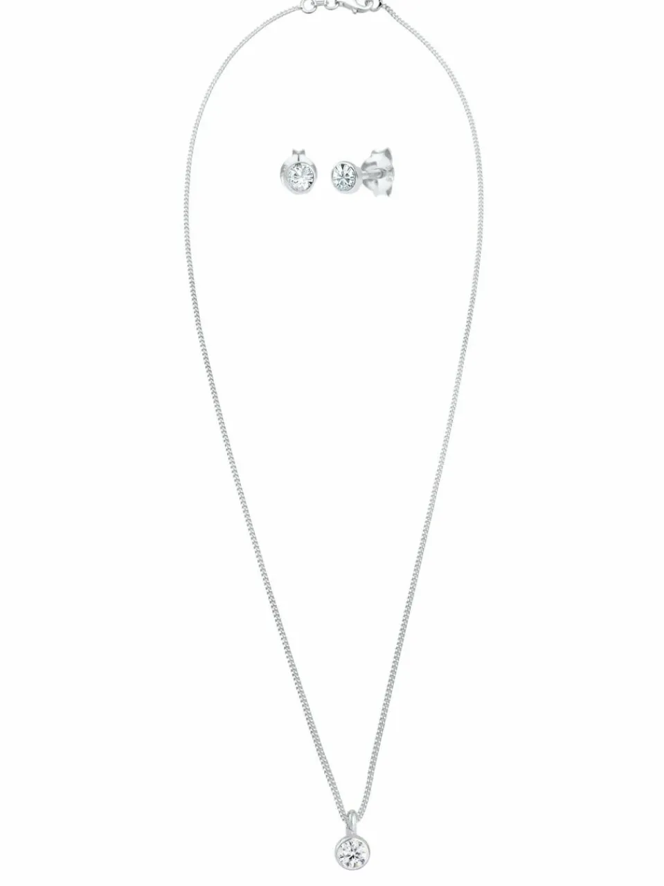 Mit klassischer Eleganz und funkelnd femininem Stil wird dieses Schmuck-Set in deinem Schmucksammlung unverzichtbar werden. Die dezenten Swarovski® Kristalle an der Halskette und den passenden Ohrsteckern wirken edel und weiblich. Ein traumhaftes Set von wertigen Materialen und modernem Design. Dieses Accessoire sorgt für einen atemberaubenden Blickfang.