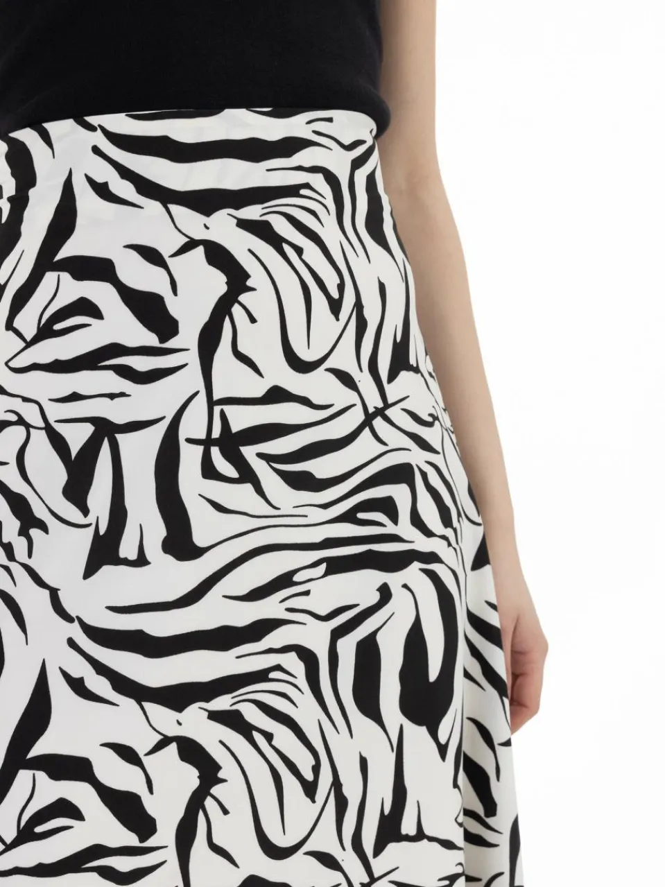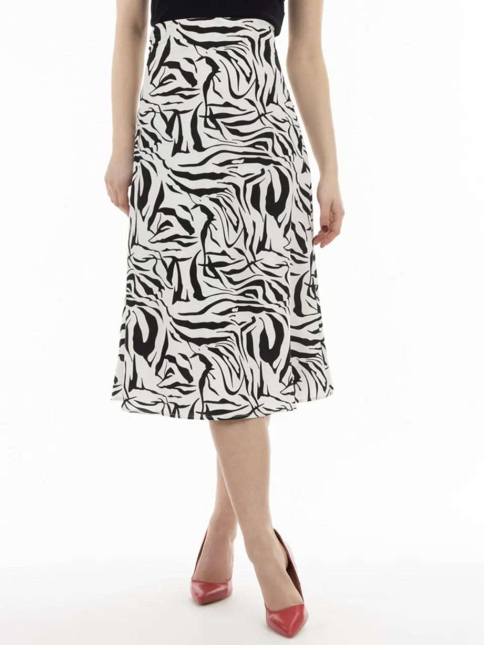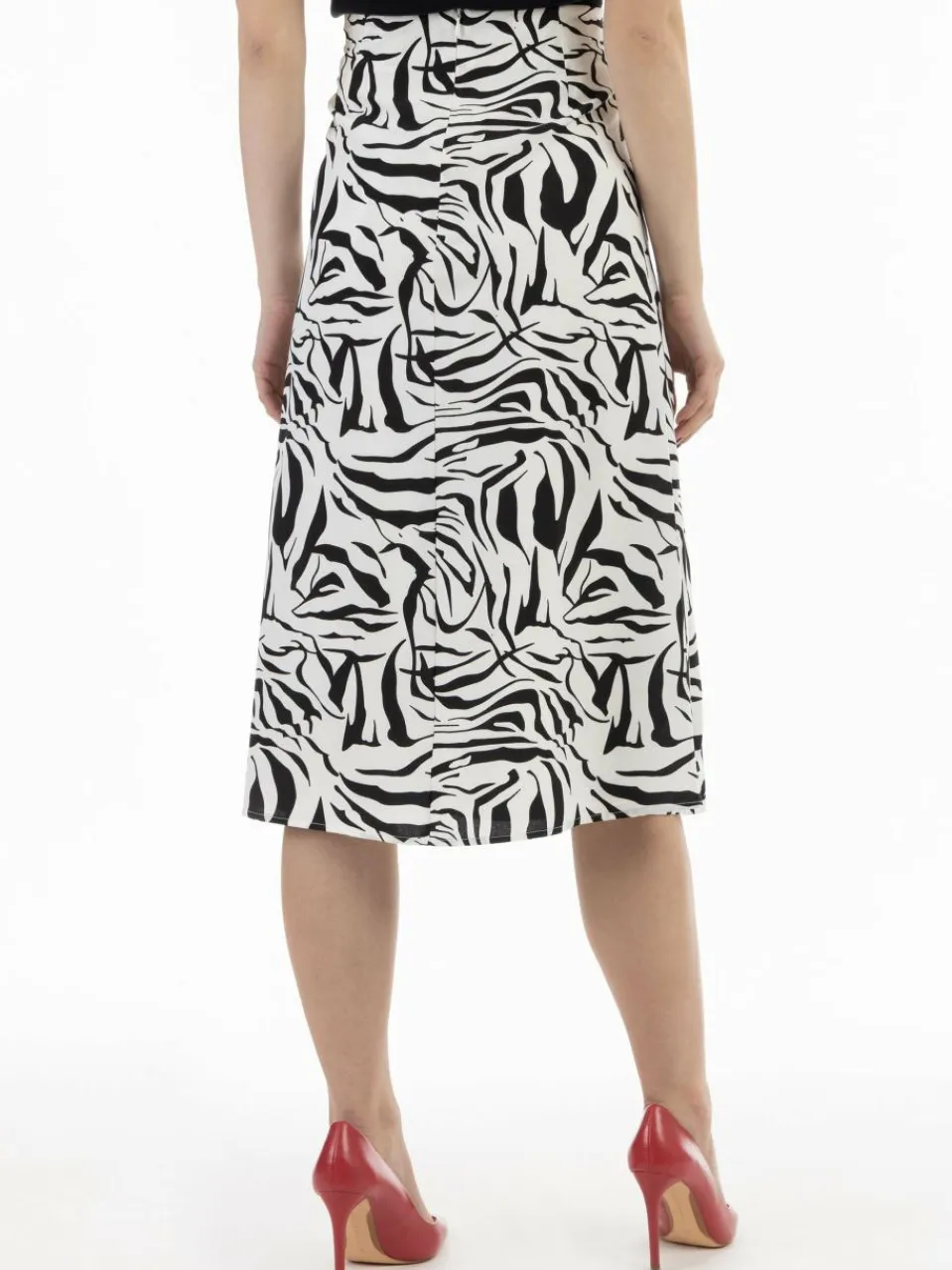 Das Zebra-Dessin ist eines der Klassiker unter den Animal-Prints. Bei faina ziert es den eleganten Rock in A-Linie, den Sie mit passenden Farben hervorragend kombinieren können. Das knitterarme Material hat ein weiches Gefühl und ist mit einem angenehmen Unterrock ausgestattet. Ein rückseitiger Reißverschluss ermöglicht ein leichtes An- und Ausziehen.
