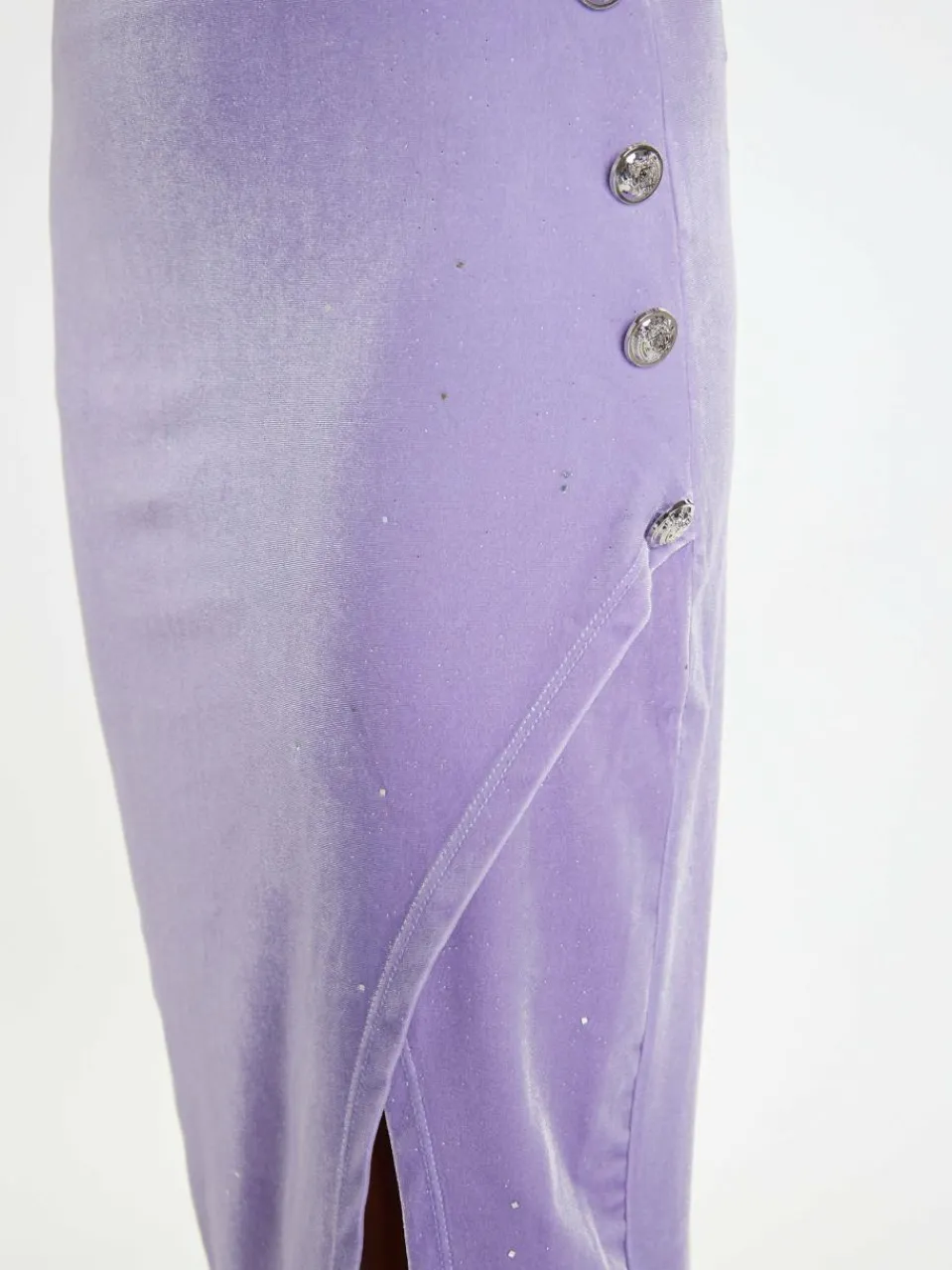 Mit dem figurnahen Bleistiftrock von faina werden Sie bei Ihrem nächsten Event alle Blicke auf sich ziehen. Das asymmetrische Modell wurde aus einem soften Stretchsamt gefertigt und ist mit silberfarbenem Holo-Glitzer und kleinen Steinchen verziert. Das wadenlange Modell zeigt einen spannenden Wickeleffekt sowie einen hohen Gehschlitz, der auf elegante Weise das Bein blitzen lässt. Wir ergänzen den Look mit High-Heels und dem passenden Oberteil des Labels.