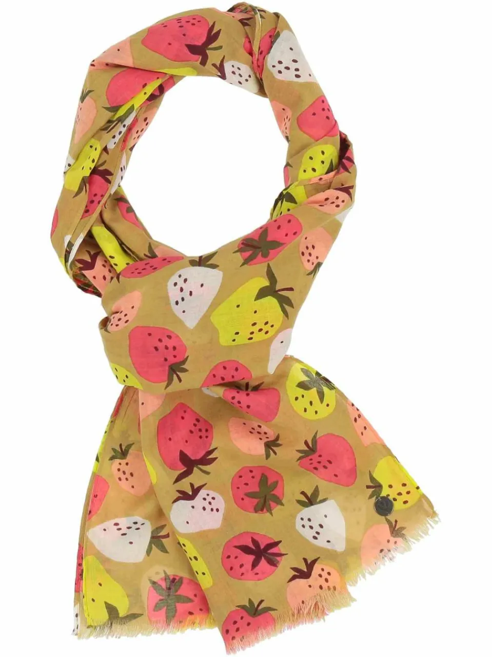 So süß: Der 50 x 180 cm lange Schal von FRAAS ist über und über mit Erdbeeren in verschiedenen Farben verziert. Aus der Ferne sieht es aus, als tummelten sich bunte Punkte auf dem Stoff und aus der Nähe zaubert das fruchtig-freche Accessoire jedem ein Lächeln aufs Gesicht. Die Naturfaser Baumwolle besitzt viele positive Eigenschaften: Sie ist absolut hautsympathisch, atmungsaktiv und langlebig. Das macht den Sommerschal zum tollen Begleiter zu Sommerkleid, Jeansjacke und Co.