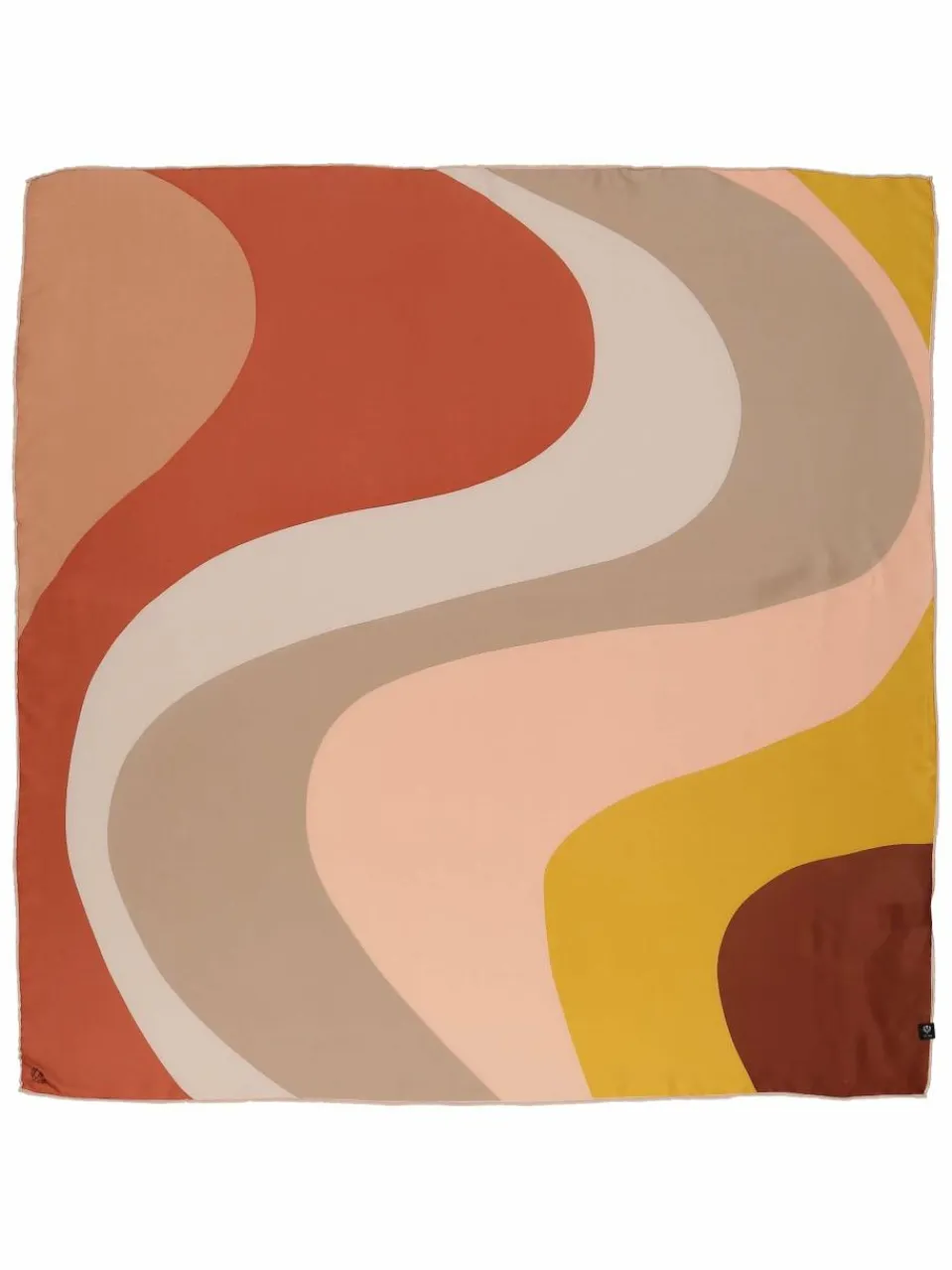 Elegantes Sommer-Accessoire: Das Seidentuch im farbenfrohen Wave-Design perfektioniert Ihr Outfit. Durch die hochwertige Seide ist das Tuch angenehm weich und lässt sich so um den Hals tragen, ums Handgelenk oder einfach ins Haar binden. Der dezente Glanz des Materials lässt das 88 x 88 cm großeTuch sehr edel wirken.