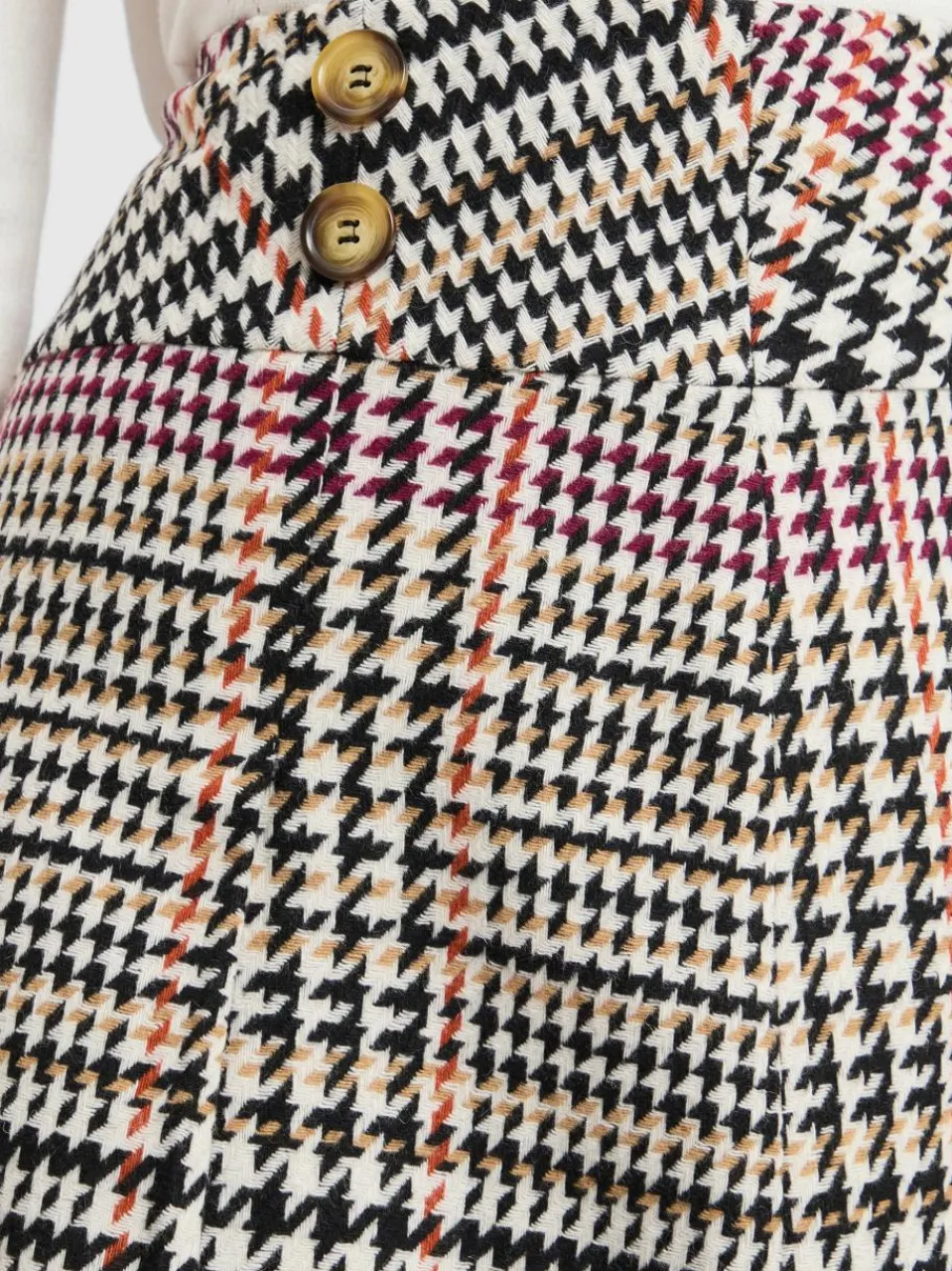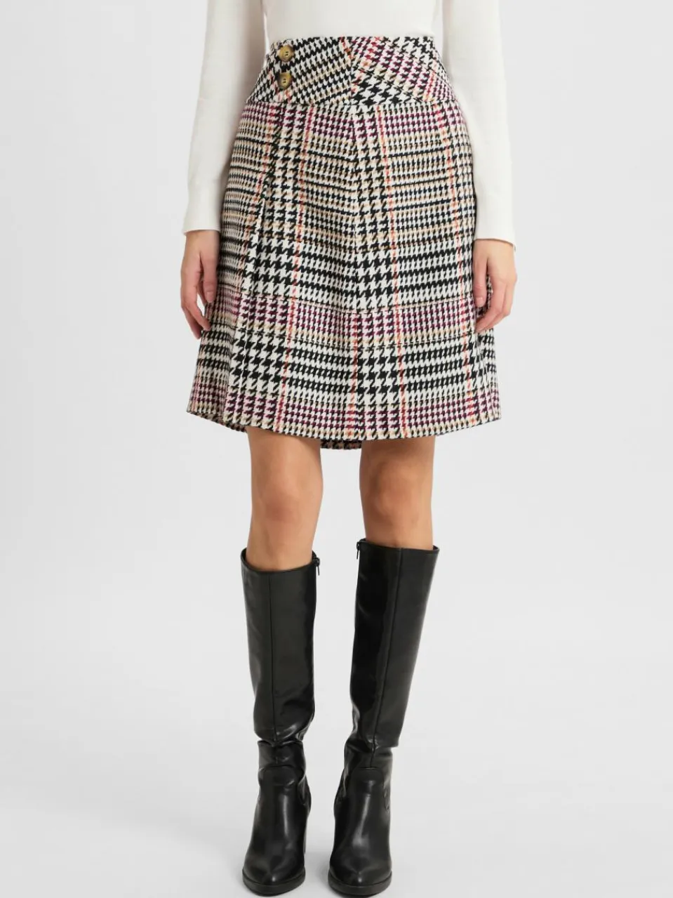 Der Rock von Franco Callegari mit Wollanteil ist ein echtes Multitalent – das harmonische Muster macht ihn vielseitig kombinierbar.