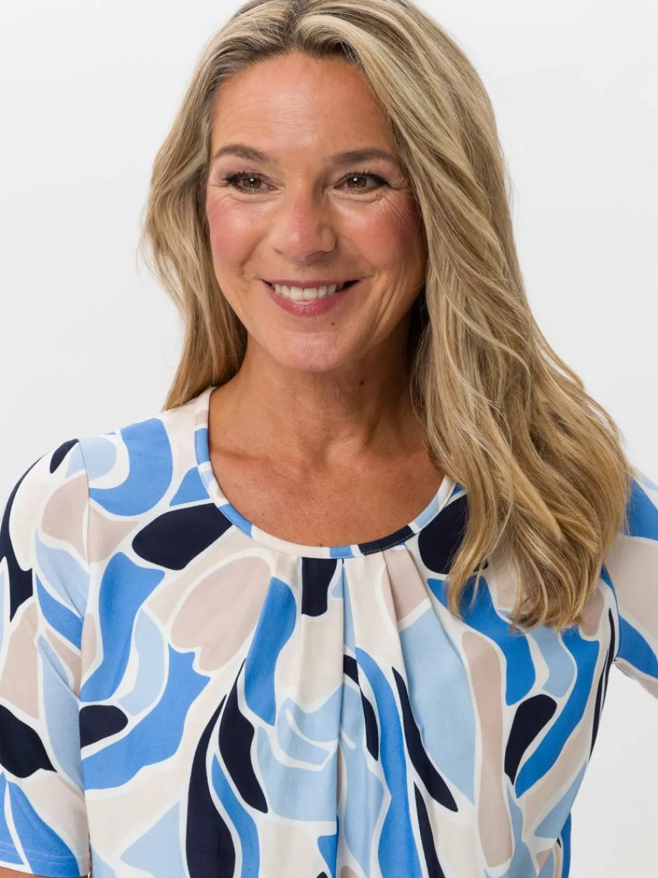 Modisches Blusenshirt mit stilvollem Muster und lockerer Passform. Der Rundhalsausschnitt mit gelegten Falten sorgt für einen femininen Look. Der elastische Bundabschluss bietet optimalen Tragekomfort. Perfekt für elegante und legere Outfits
