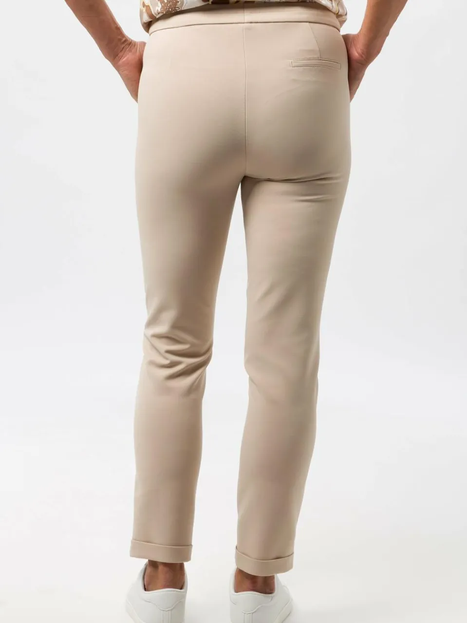 Diese Hose überzeugt mit einem eleganten Schnitt und einem elastischen Bund für optimalen Tragekomfort. Die schmale Passform und der dezente Saumaufschlag machen sie vielseitig kombinierbar – ideal für Büro und Freizeit.