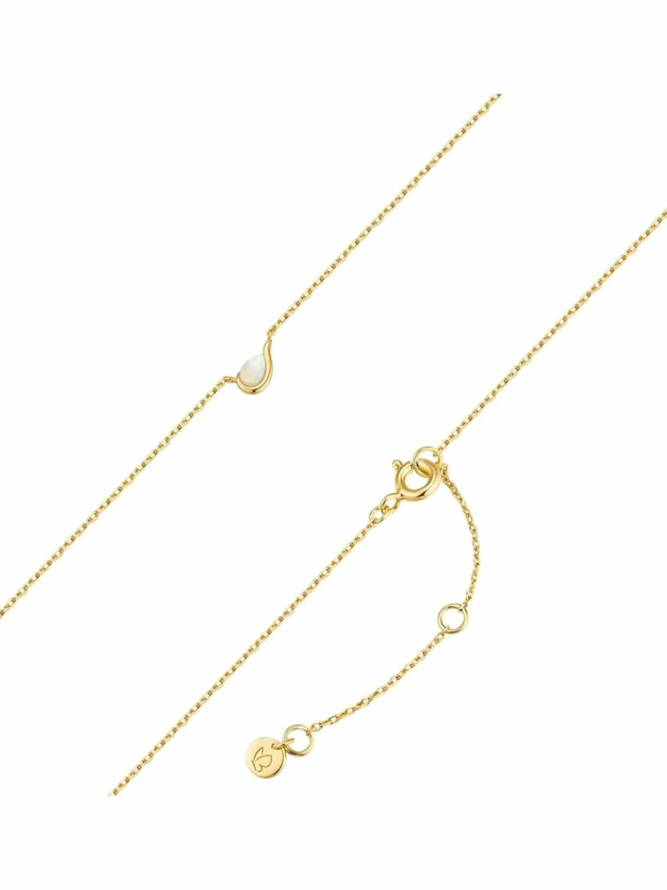 Edelstein-Ketten liegen im Trend und faszinieren mit dem Zauber charakterstarker Unikate aus der Natur – so wie dieses hübsche Modell des Labels Glanzstücke München. Blickfang ist ein tropfenförmiger, irisierender Opal im Cabochon-Schliff, fein gefasst in gelbvergoldetes Sterlingsilber. Ohne Anhängeröse direkt in die Ankerkette integriert, begeistert das Design mit einer besonders harmonischen Linienführung im Dekolleté.