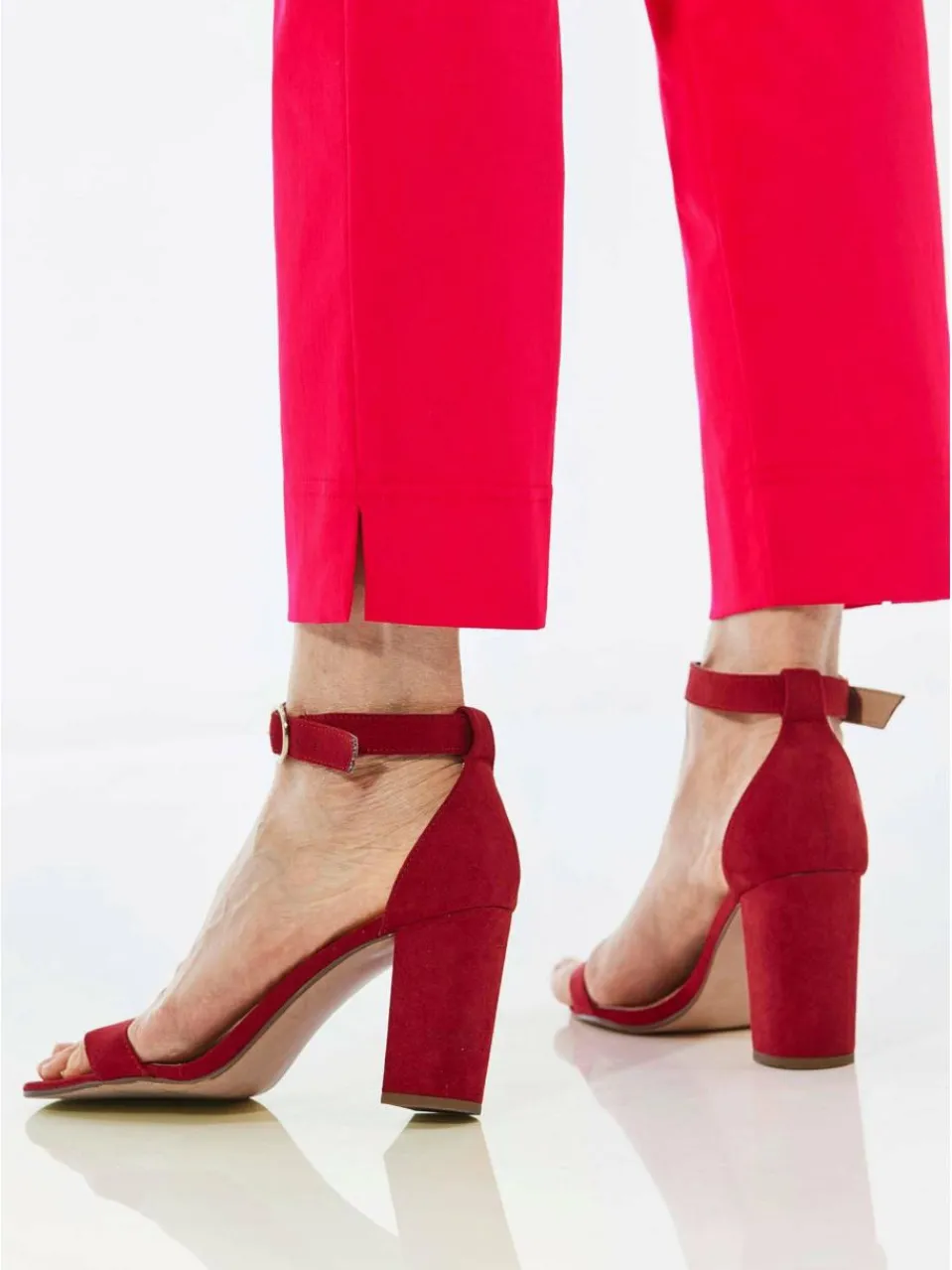 - Verkürzte Form mit Seitenschlitzen, schmaler Beinverlauf